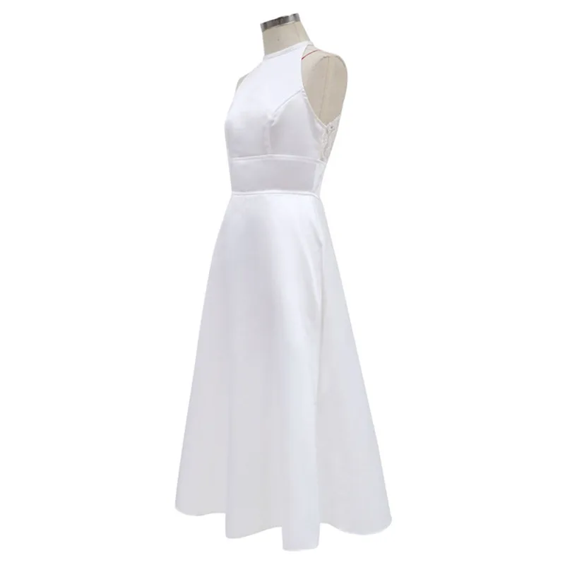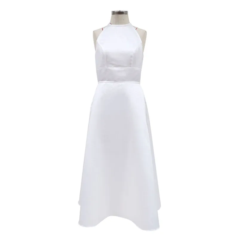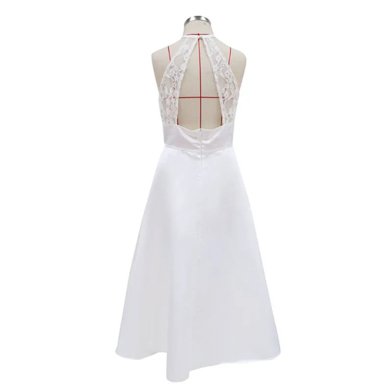 Платье женское кружевное средней длины, элегантное Формальное повседневное однотонное офисное с лямкой на шее, для свадьбы, подружки невесты, белое, лето 2021