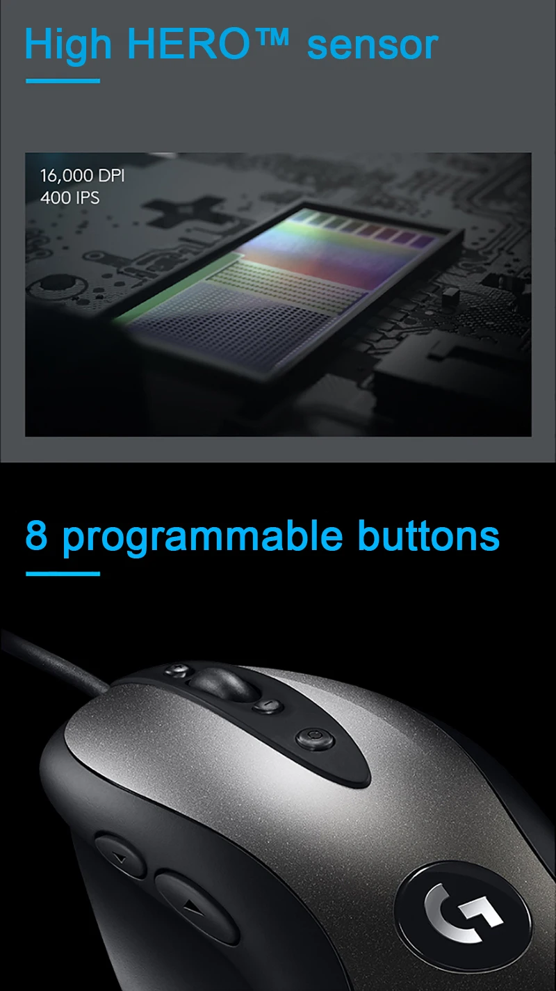 Мышь Logitech MX518, легендарная игровая мышь с 16K DPI HERO Engine...