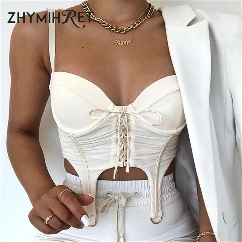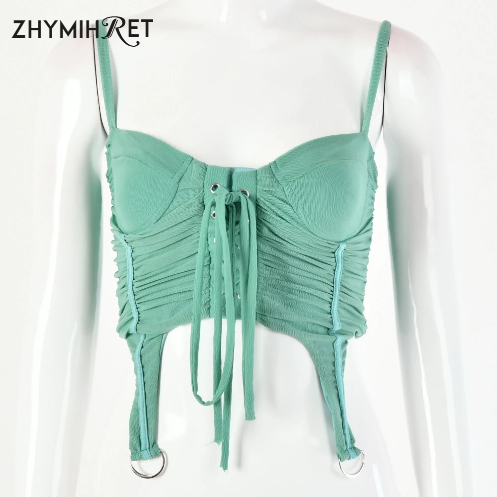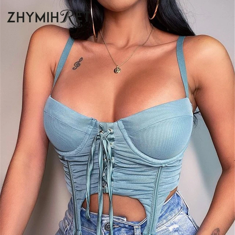 ZHYMIHRET 2020 летний сетчатый топ на шнуровке, Женский корсет без бретелек и молнии сзади Y2k, укороченный топ на бретелях с открытой спиной