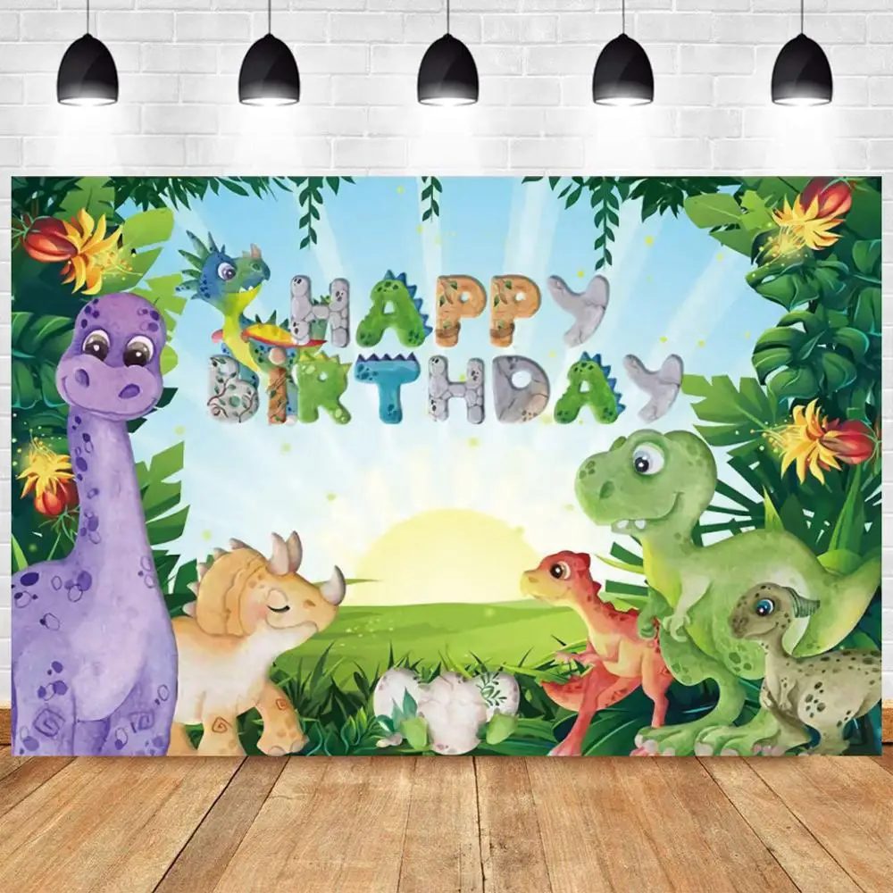 Фон для фотосъемки с изображением лесного динозавра, дня рождения, детского душа, вечеринки, мультфильмов, детских фотографий, зоопарк, студия, реквизит, украшение