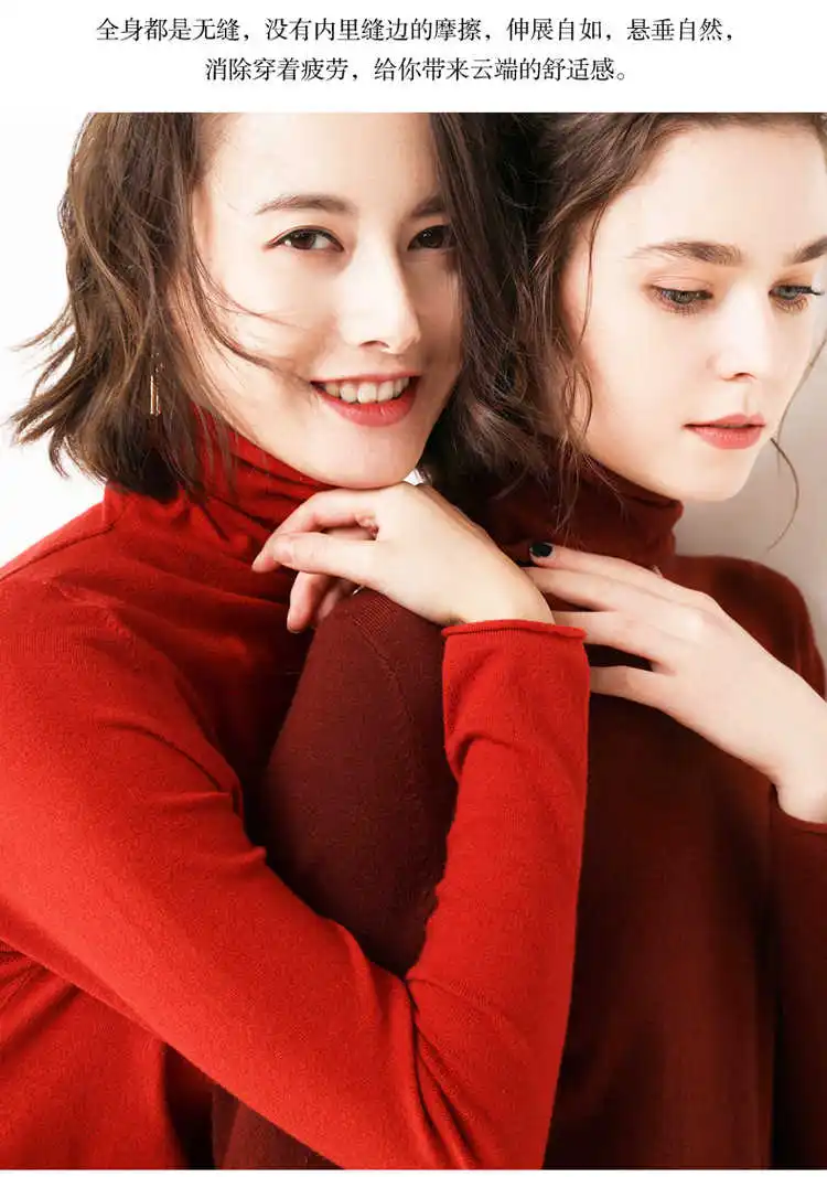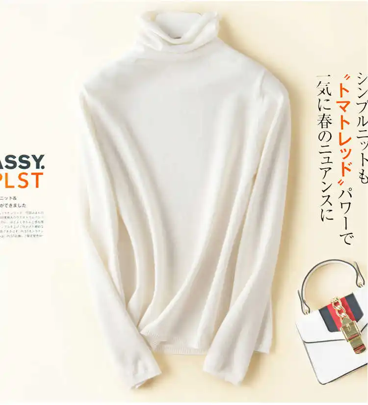 Осенне-зимний новый утолщенный пуловер с высоким воротником, женский шерстяной свитер, приталенный свитер с ворсовым воротником, Базовая рубашка