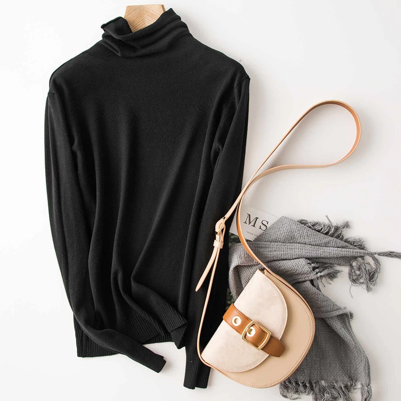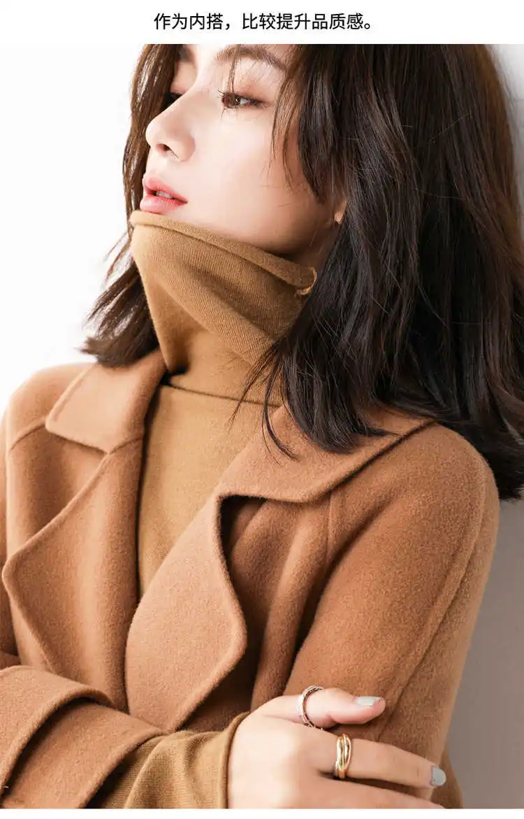 Свитер женский кашемировый, с высоким воротом, однотонный, теплый, Осень-зима, 2020