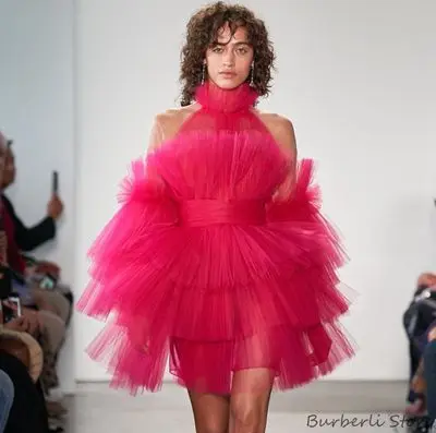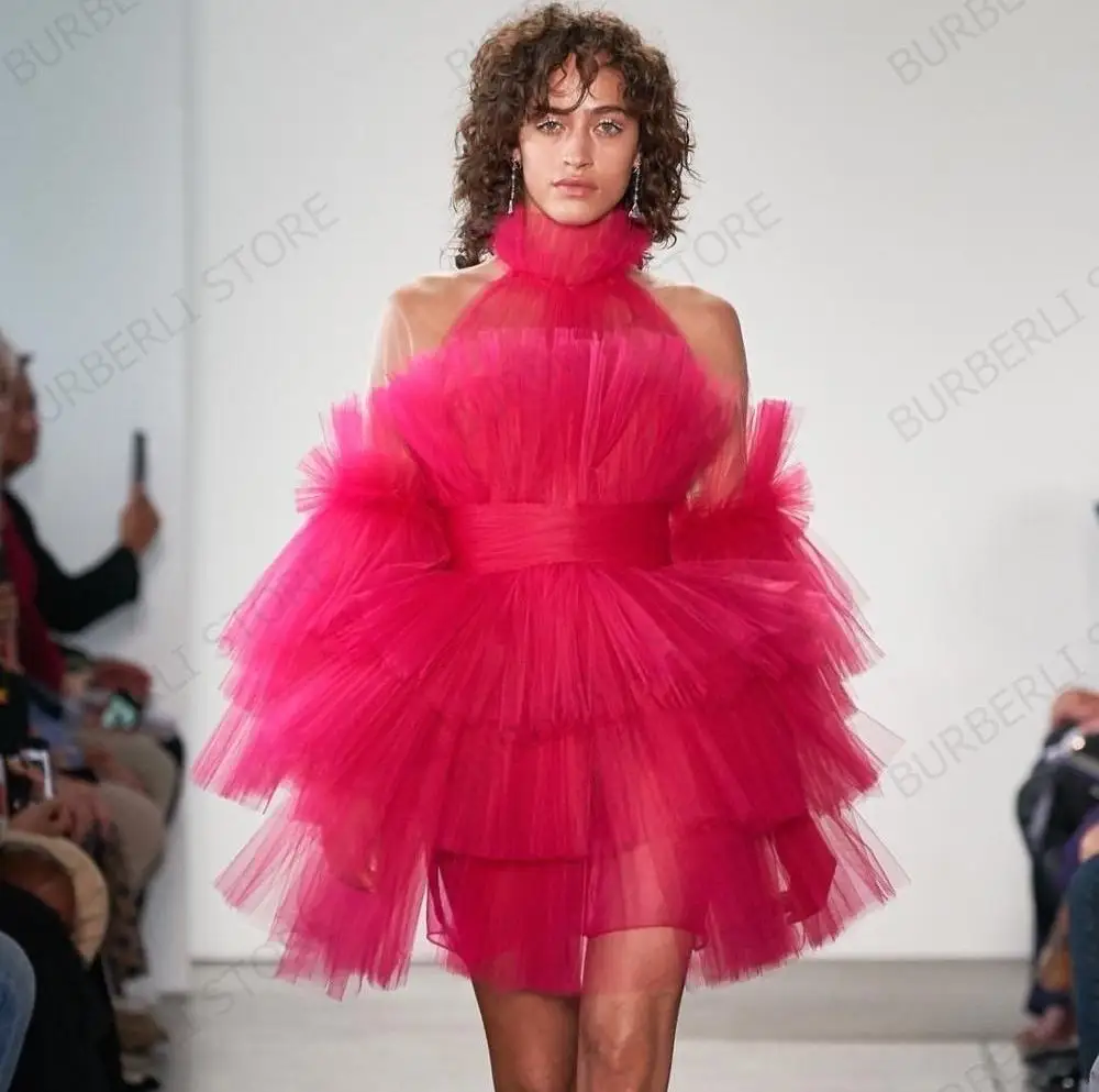 Модное летнее платье с лямкой на шее из многоярусного тюля для женщин, короткое платье-пачка с оборками, женское платье, платье