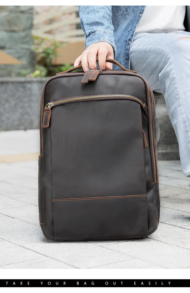 Рюкзак мужской, из натуральной кожи, с ремнем, для ноутбука 16 дюймов
