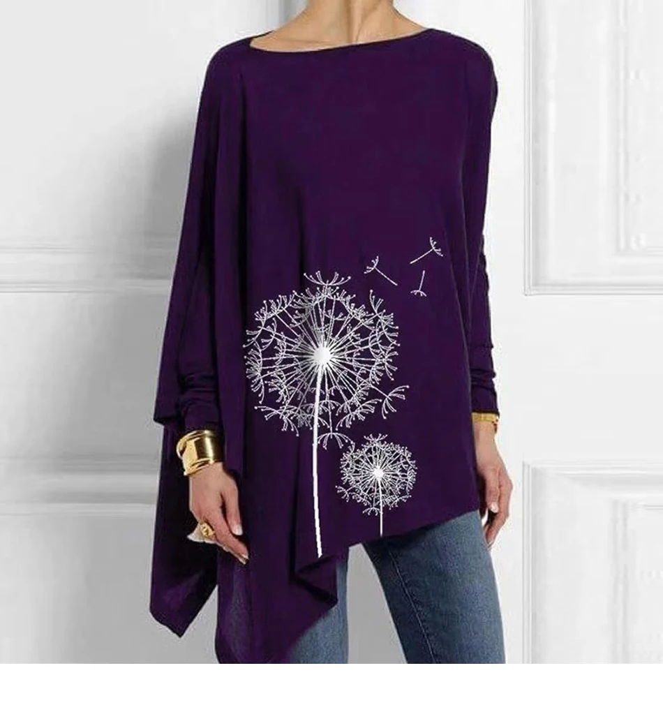 Блузка женская хлопковая Асимметричная с круглым вырезом и длинным рукавом
