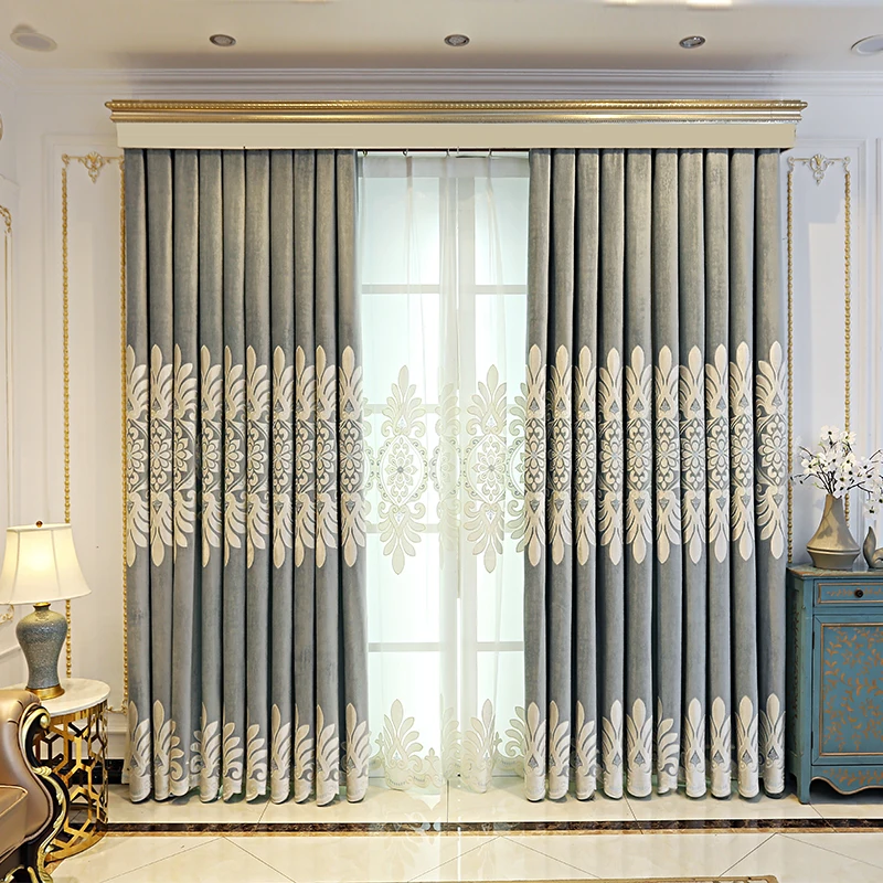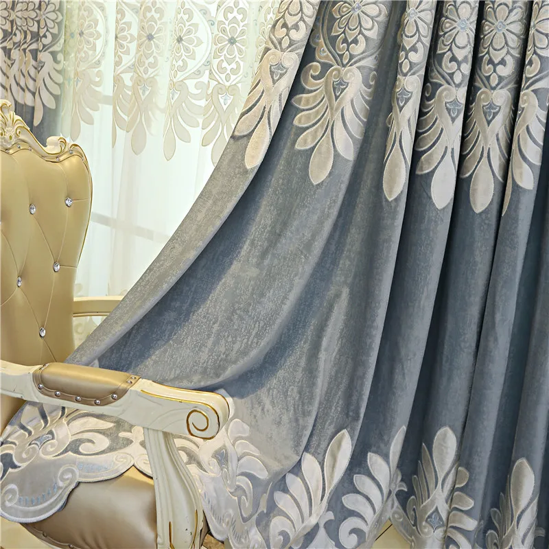 Серые высококачественные шторы в европейском стиле с вышивкой для в...
