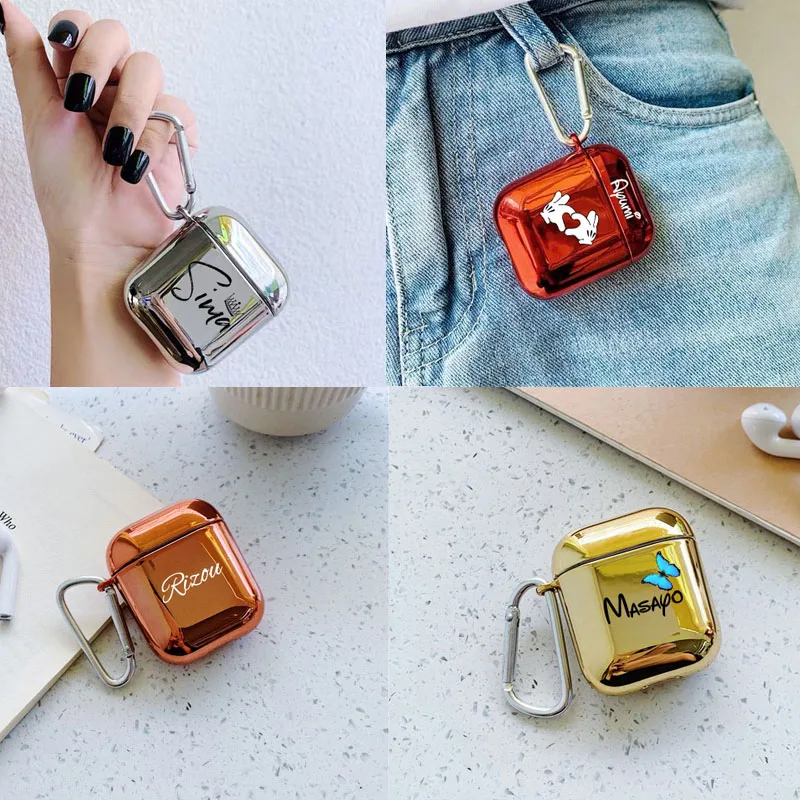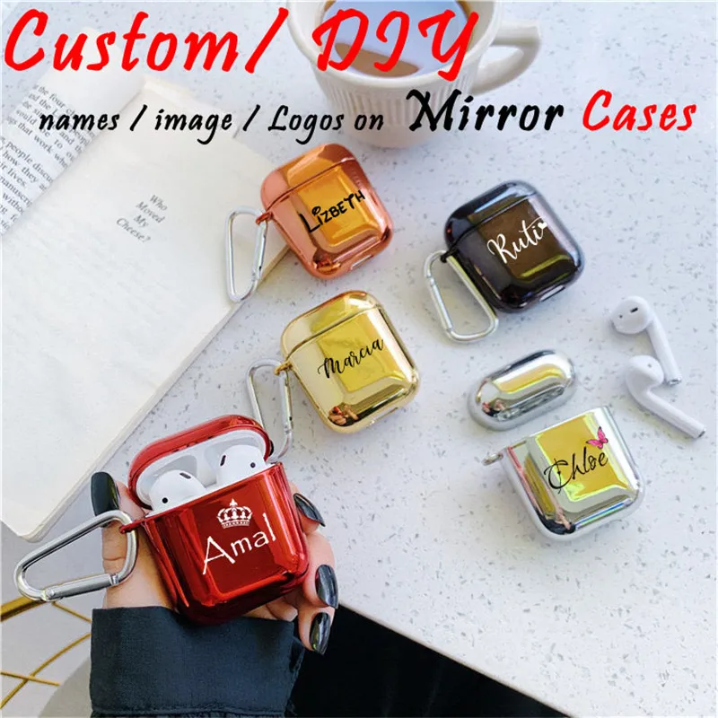 Зеркальный чехол для Airpod 1 и 2 с именем под заказ, защитный роскошный зеркальный чехол для наушников с блестками из твердого пластика с индивидуальным дизайном