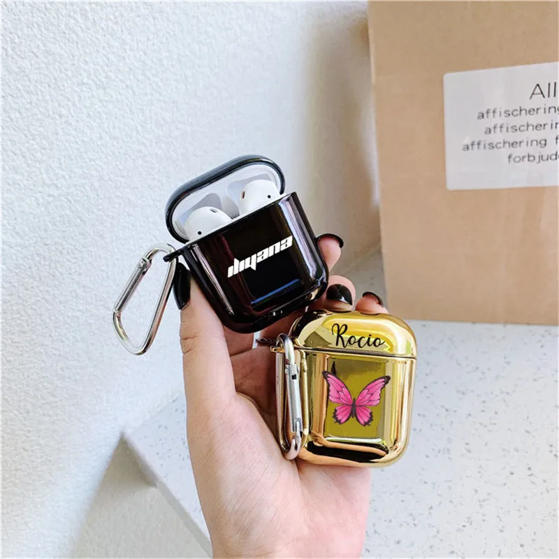 Чехол с индивидуальным логотипом имени для Airpods, блестящий чехол...