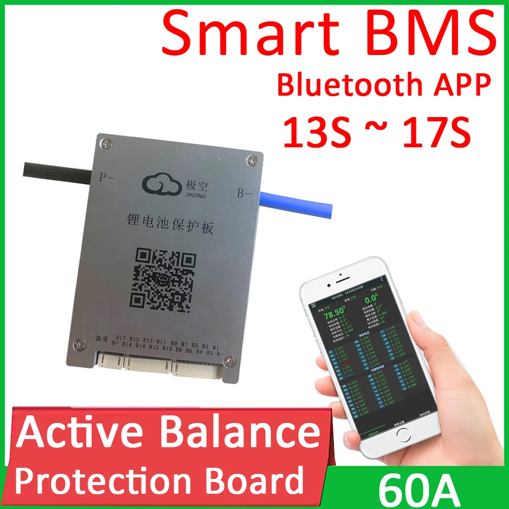 13S ~ 17S 60A плата защиты от активного баланса 60A непрерывный ток Smart Bluetooth APP Lifepo4 Li-Ion 48V 16S 14S