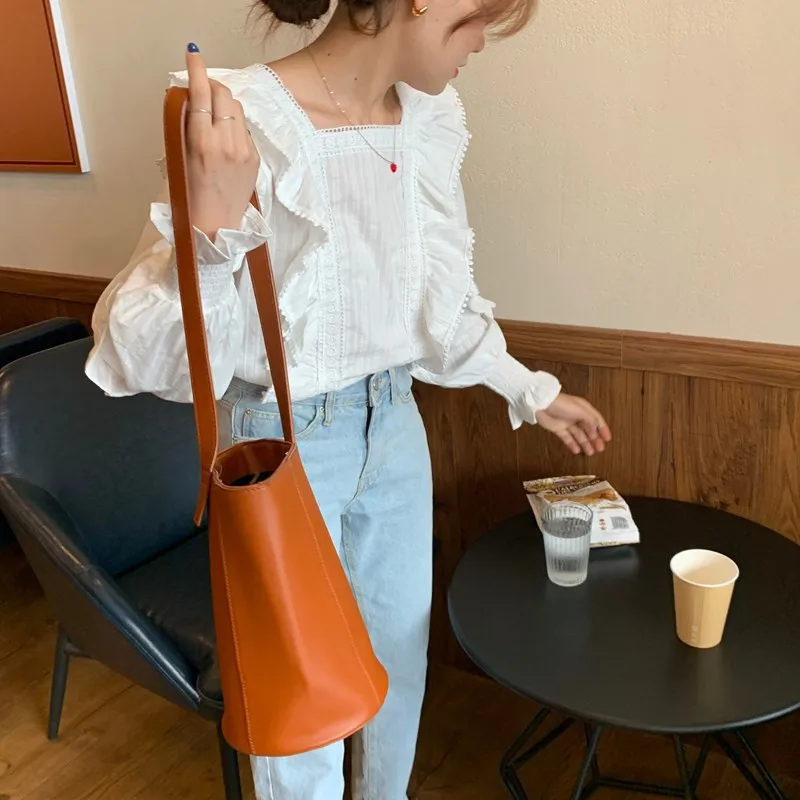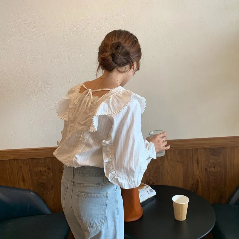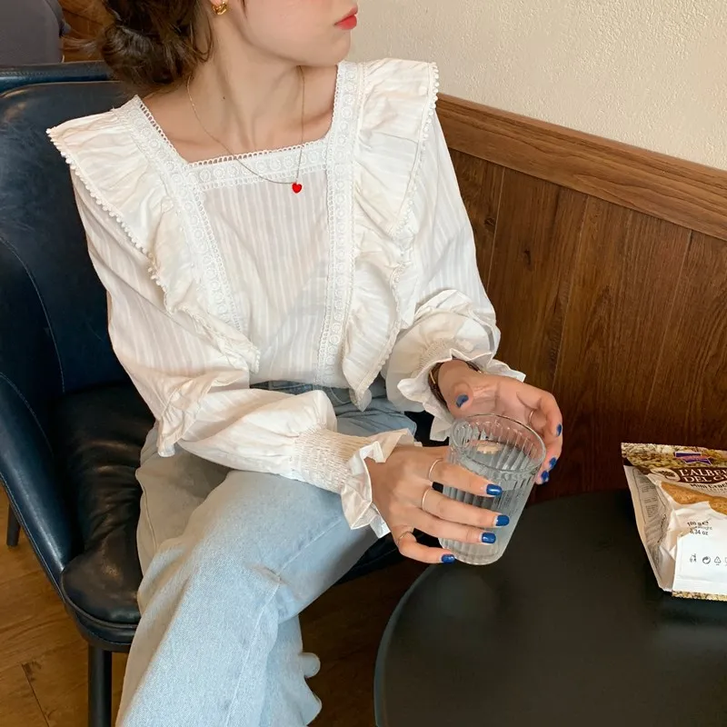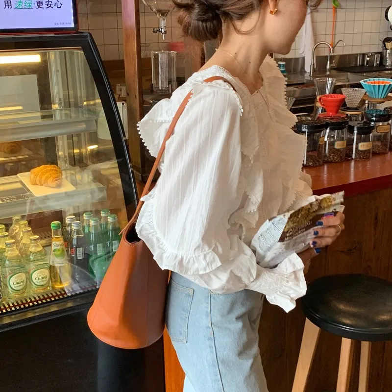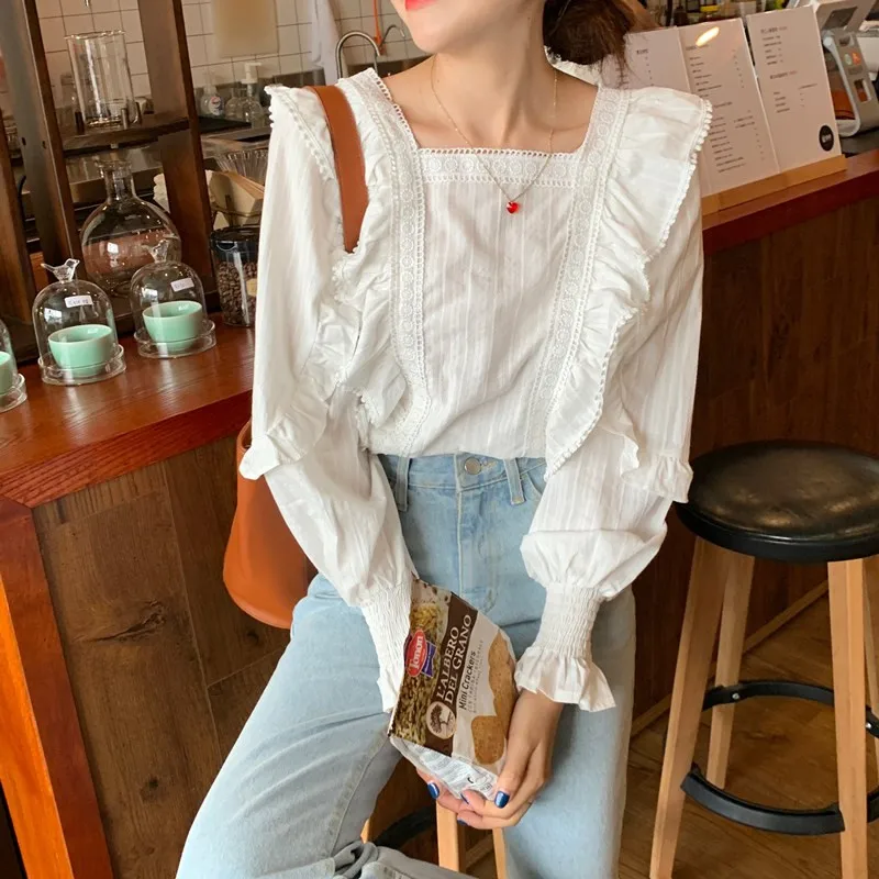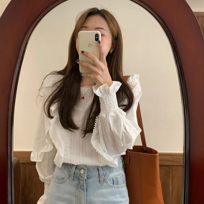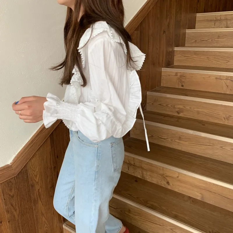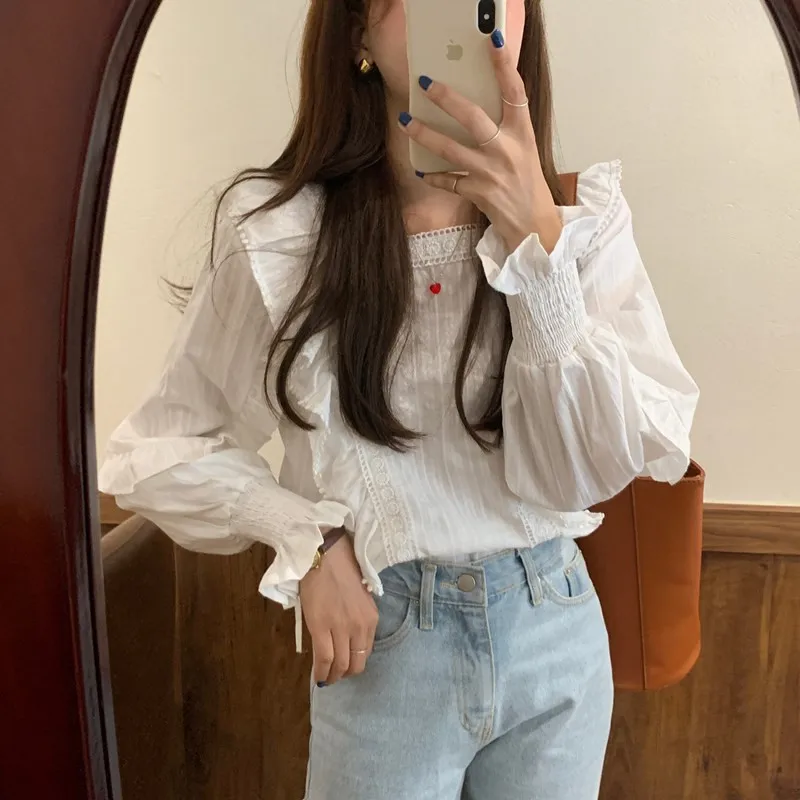 Блузка Alien Kitty Женская с длинным рукавом, Модная белая Свободная рубашка в Корейском стиле, милые элегантные блузки с оборками, осень 2021