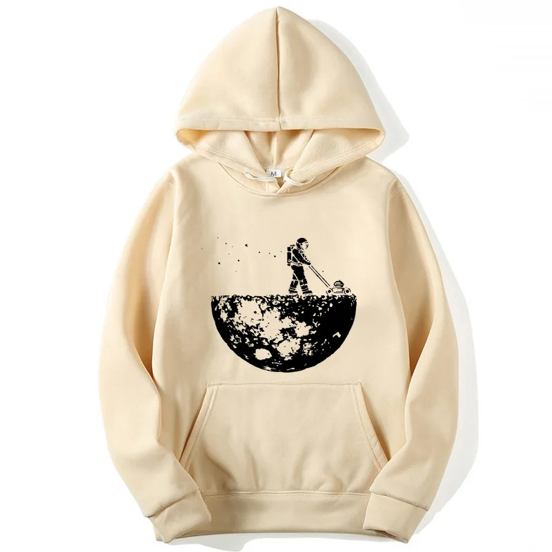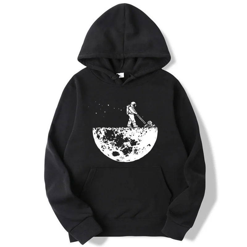 Толстовка мужская с капюшоном, флисовое худи в стиле Харадзюку, модное Брендовое повседневное худи с принтом Луны и космонавтов, худи в стиле хип-хоп