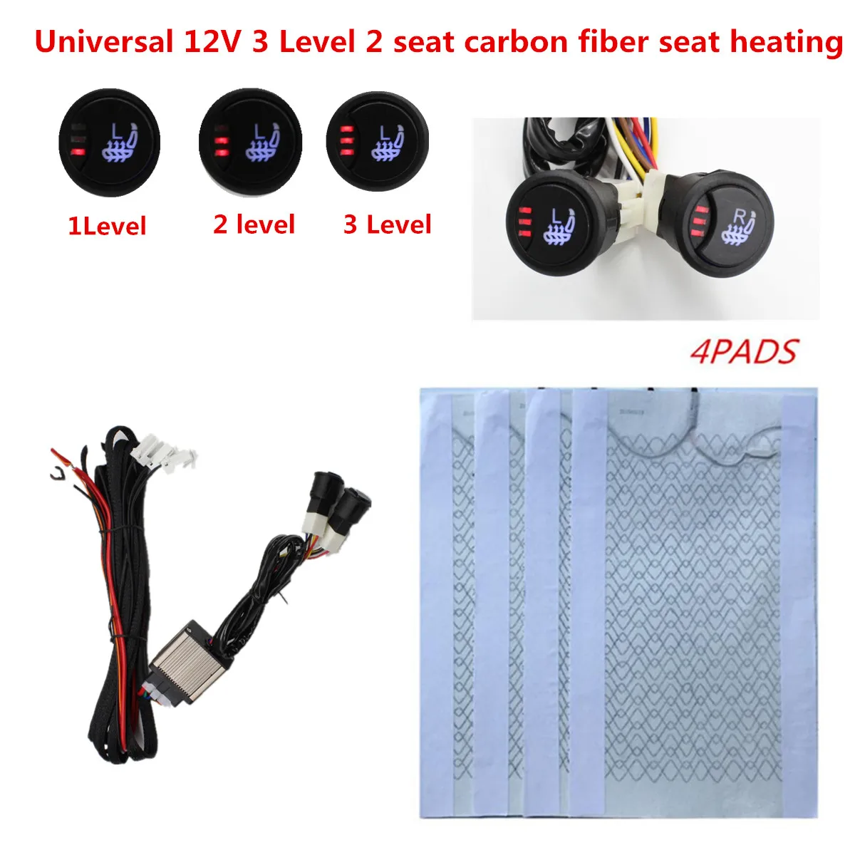 12 В сиденье с подогревом из углеродного волокна для автомобиля, внедорожника, подогреватель, колодки + 3 кнопки переключения, внутренняя крышка сиденья, подогреватель, поддержка