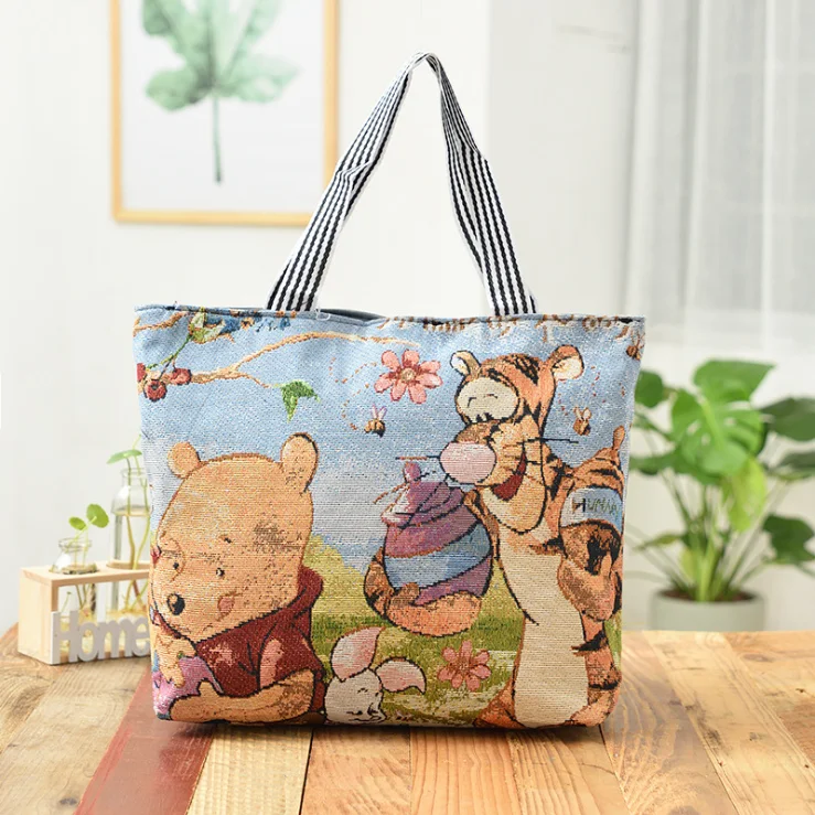 Модный холщовый рюкзак с мультипликационным изображением Микки Мауса Лило Стича пуха медведя из мультфильма сумка-мессенджер через плечо для покупок