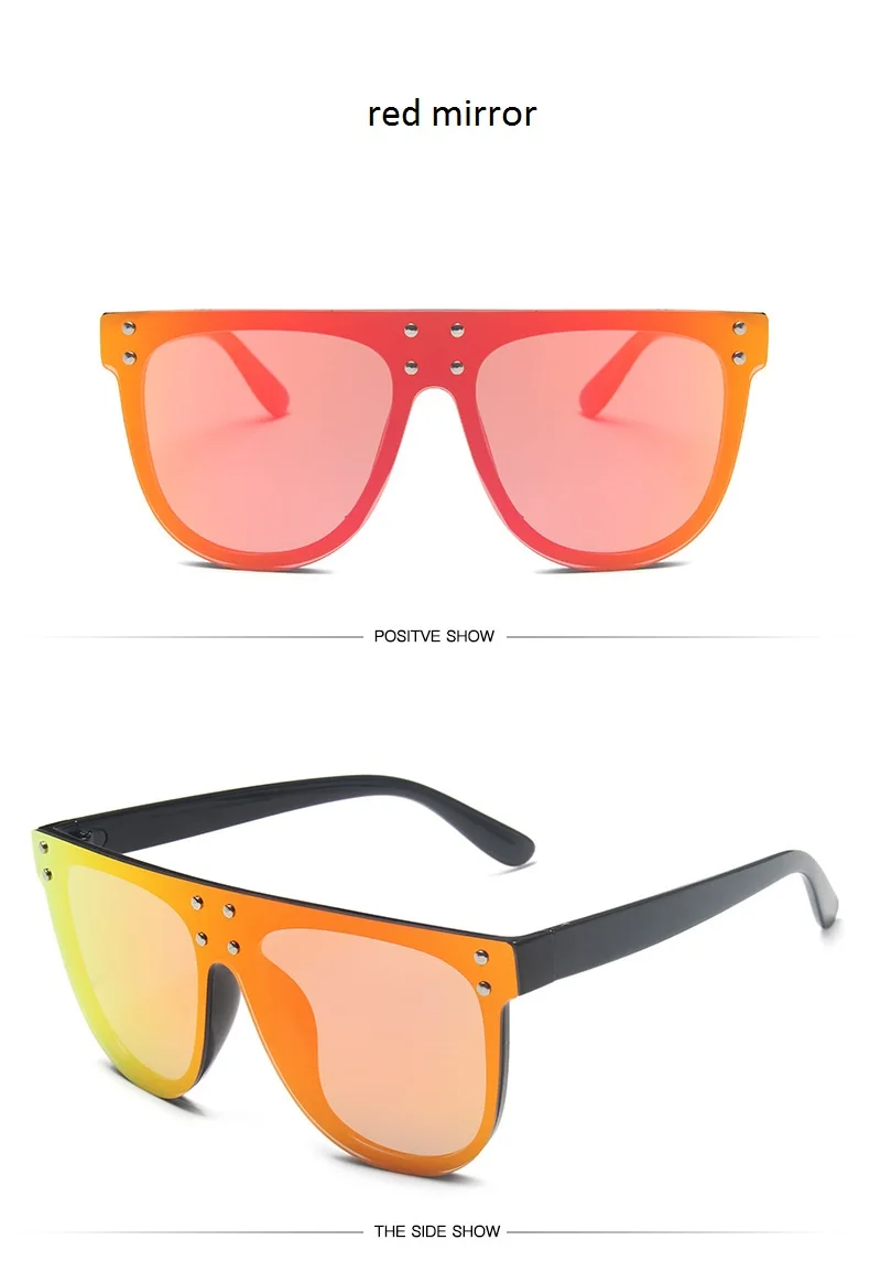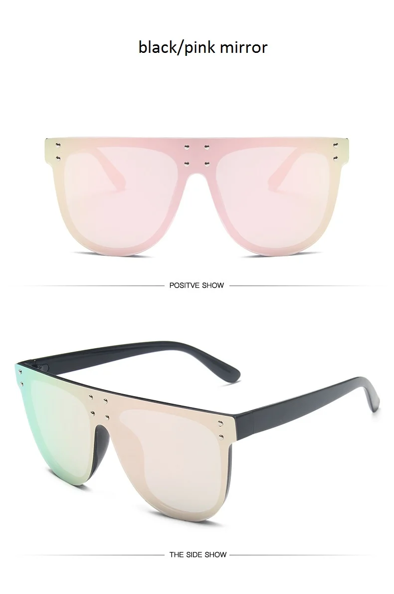 Солнцезащитные очки унисекс, безободковые квадратные солнечные очки оверсайз с заклепка зеркало, брендовые дизайнерские розовые UV400