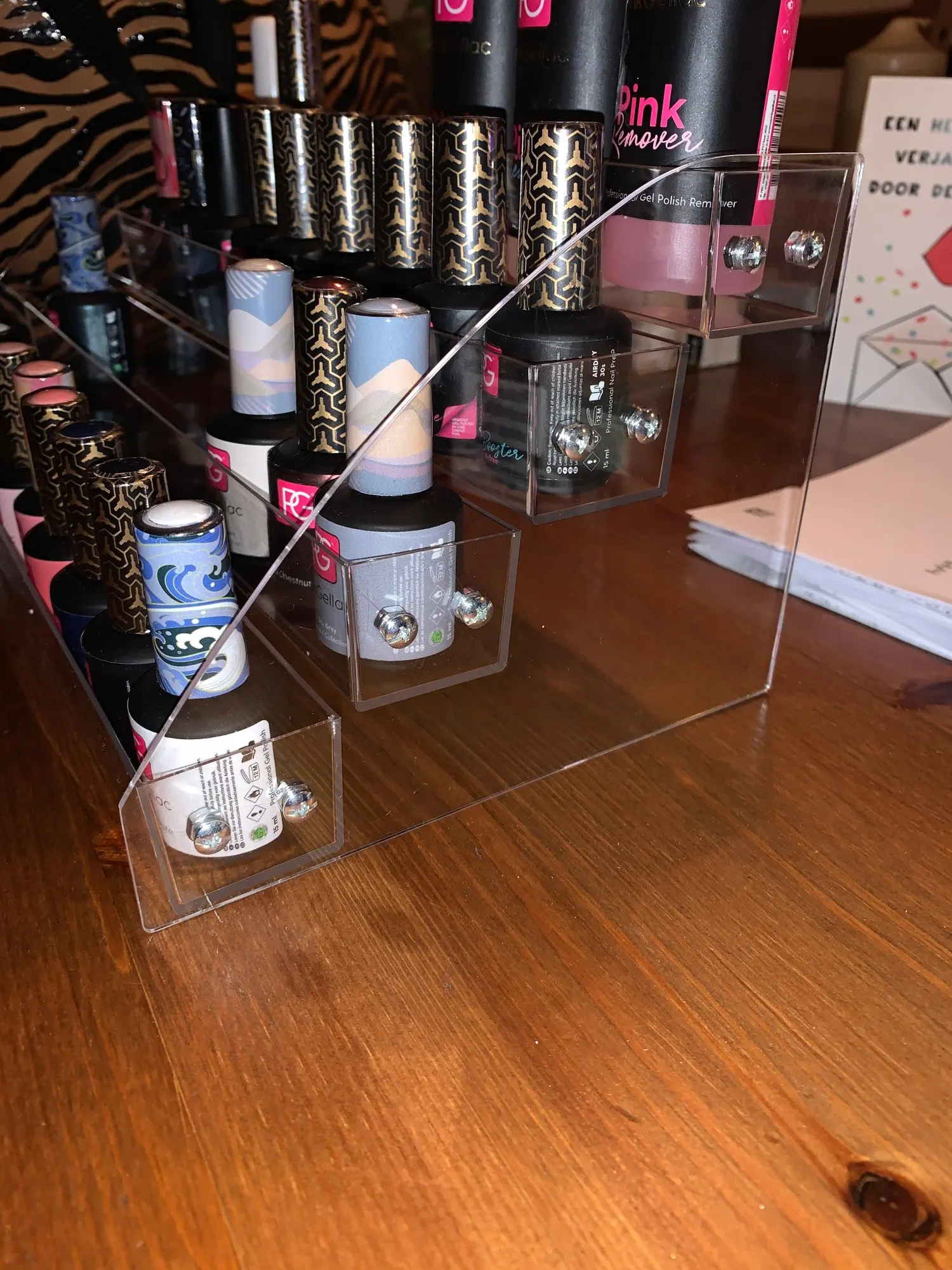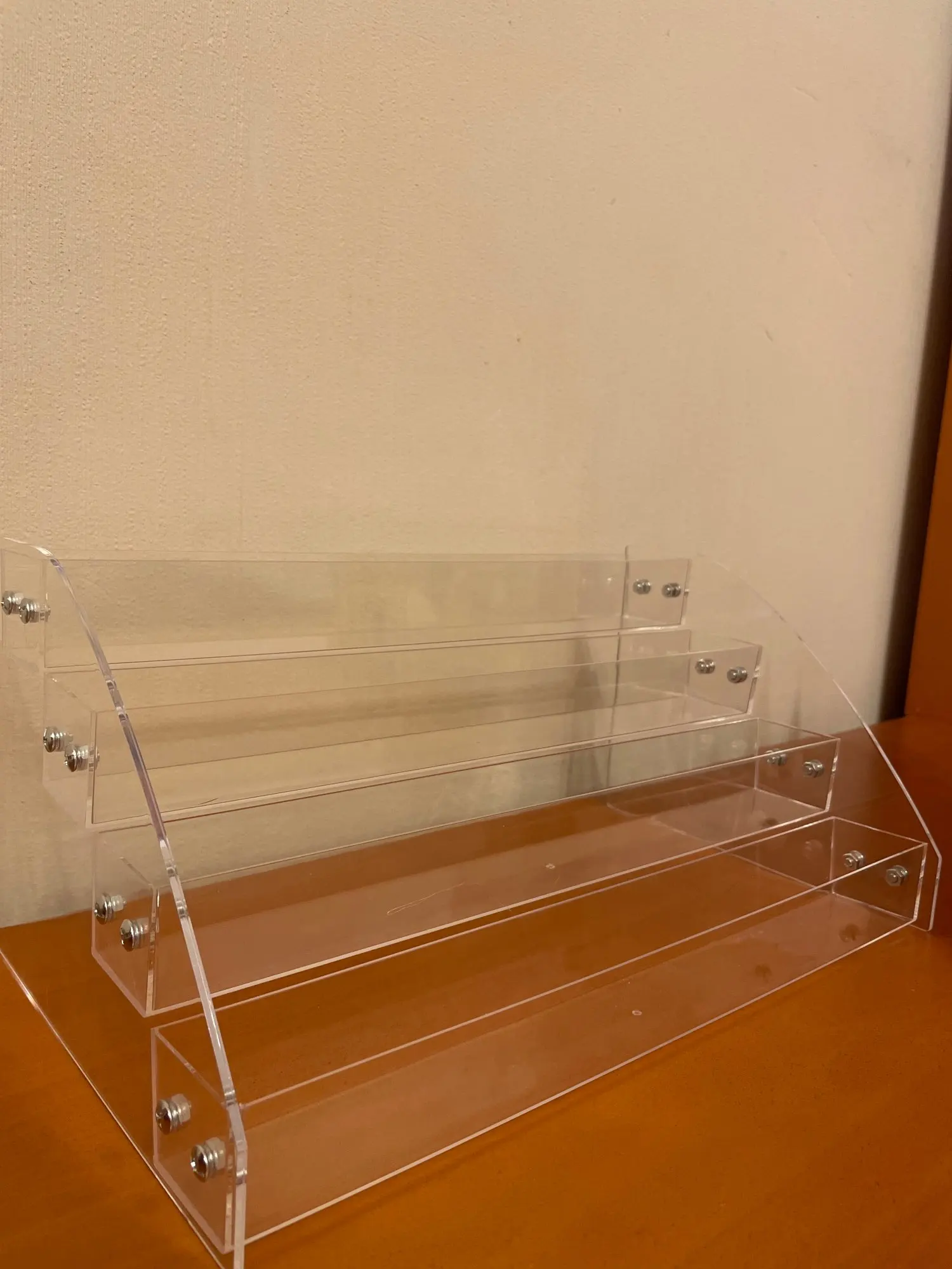 Доставили быстро и были очень хорошо упакованы. На сборку ушло несколько минут-просто прикрутите гайки в положение и она готова к использованию. Хорошо держит бутылки большего размера, такие как OPI brand.