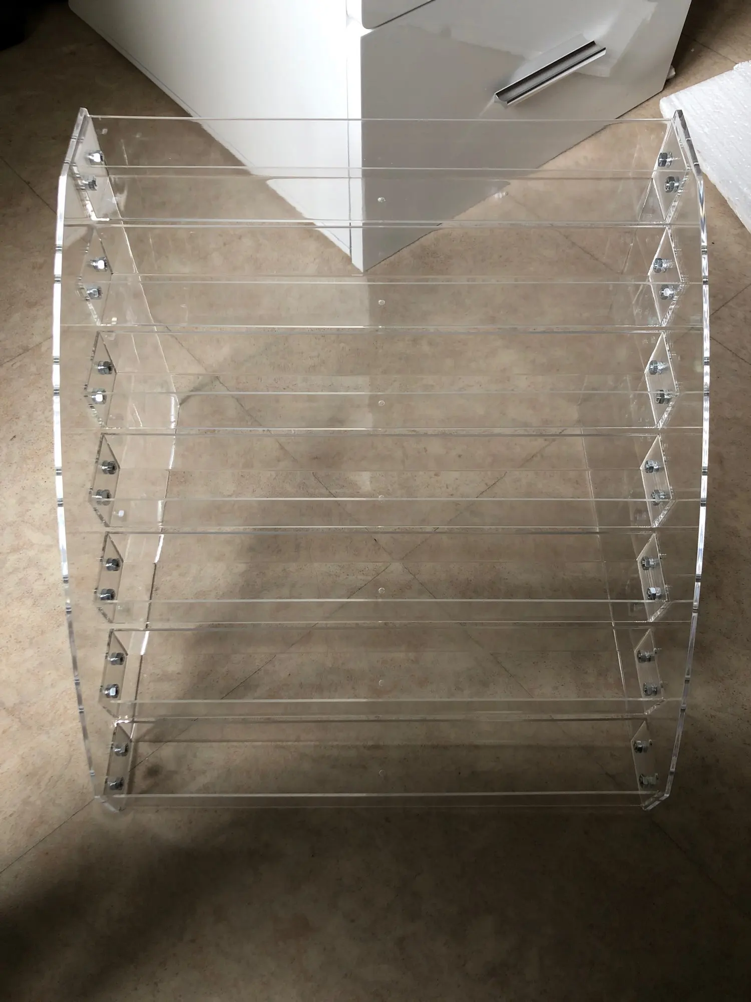Я довольна безумно. Продавец упаковал все замечательно, пенопласта вокруг было как на холодильник. Все отверстия, винтики и гайки идеально совпадают, один винтик и гайка запасные. Ничего не треснуло, не поцарапалось. Наконец наведу порядок в своих лаках. Продавца рекомендую!
