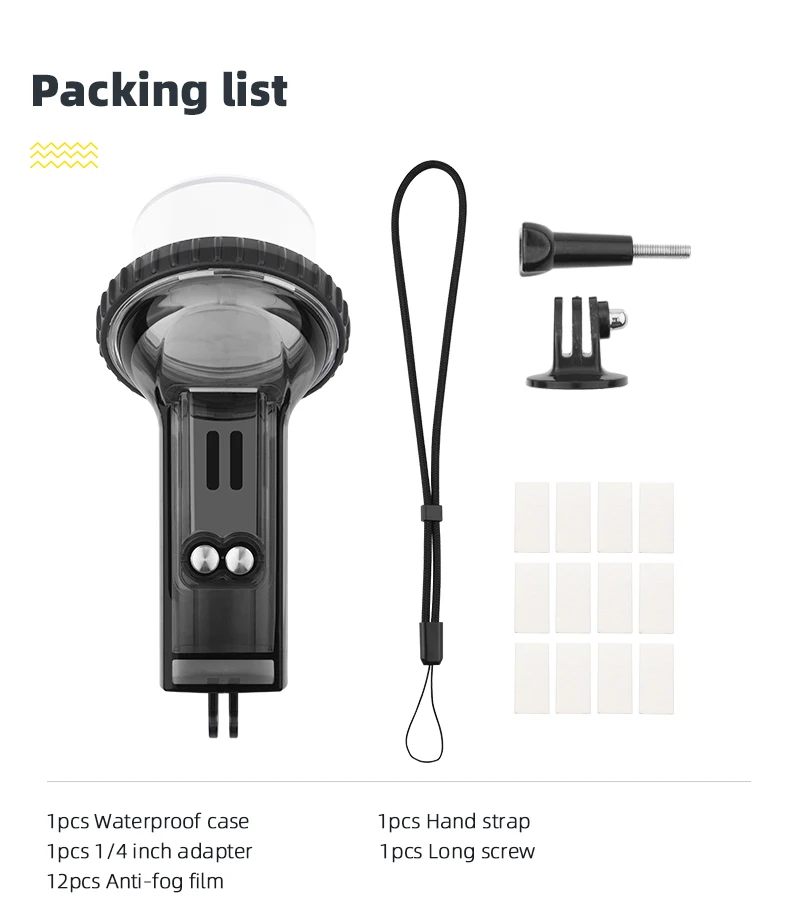 Характеристика:1. Водонепроницаемый чехол водостойкий на глубине до 60 м,2. Подходит для серфинга, dicing, дождливых дней и т. д.3. Более 98% пропускания,4. Две кнопки снаружи обеспечивают точное управление карманом Osmo,5. Противотуманная линза эффективно предотвращает запотевание чехол.Описание:Материал: Поликарбонат,Применимо: для Osmo Pocket,Цвет: прозрачный, черный,Вес нетто: 164,7 г,Размер изделия: 8*19 см.Упаковочный лист:Osmo Карманный водонепроницаемый чехол × 1Osmo карманная противотуманная вставка × 12Osmo Карманный водонепроницаемый ремешок × 1Примечание: в комплект не входит Карманная камера OSMO.