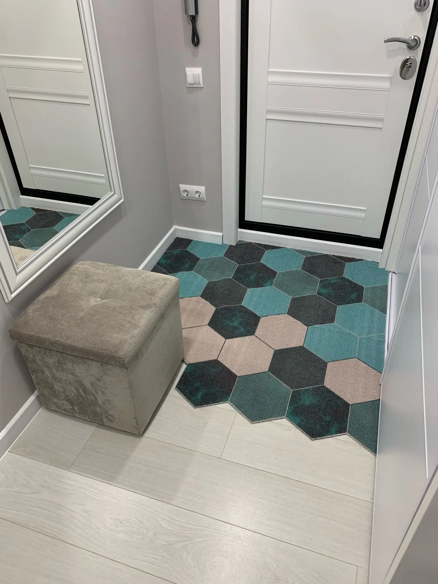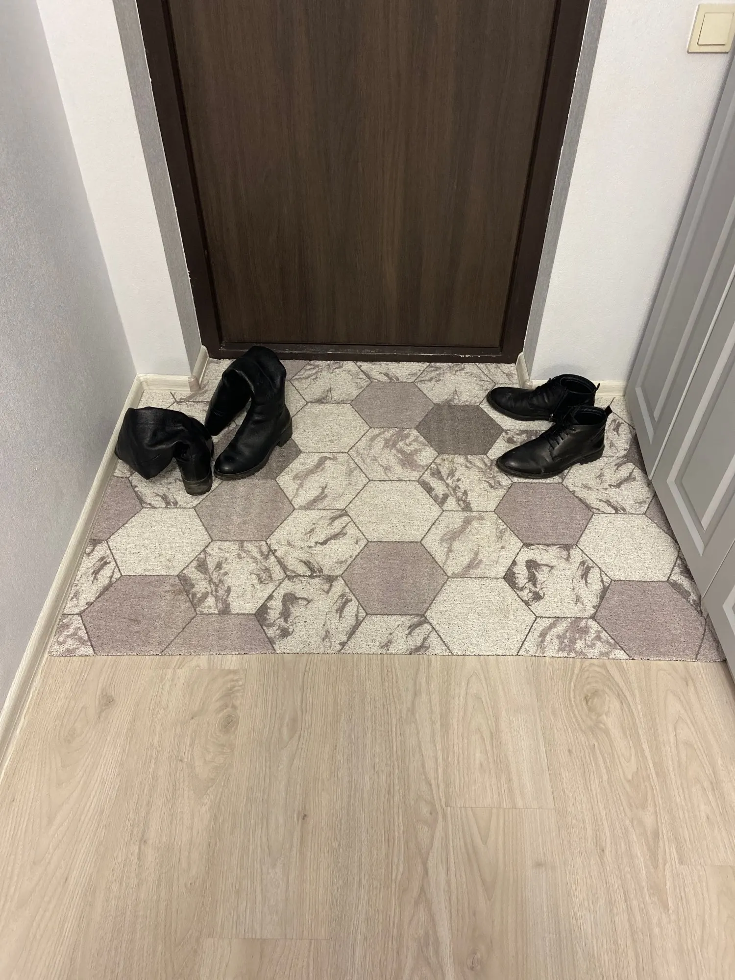 Наша квартира не имеет входа, и мы не носим нашу обувь внутри нашего дома. Коврики появились в указанное время, и как только мы вытянули их из коробки, у них не было никаких сильных запахов!