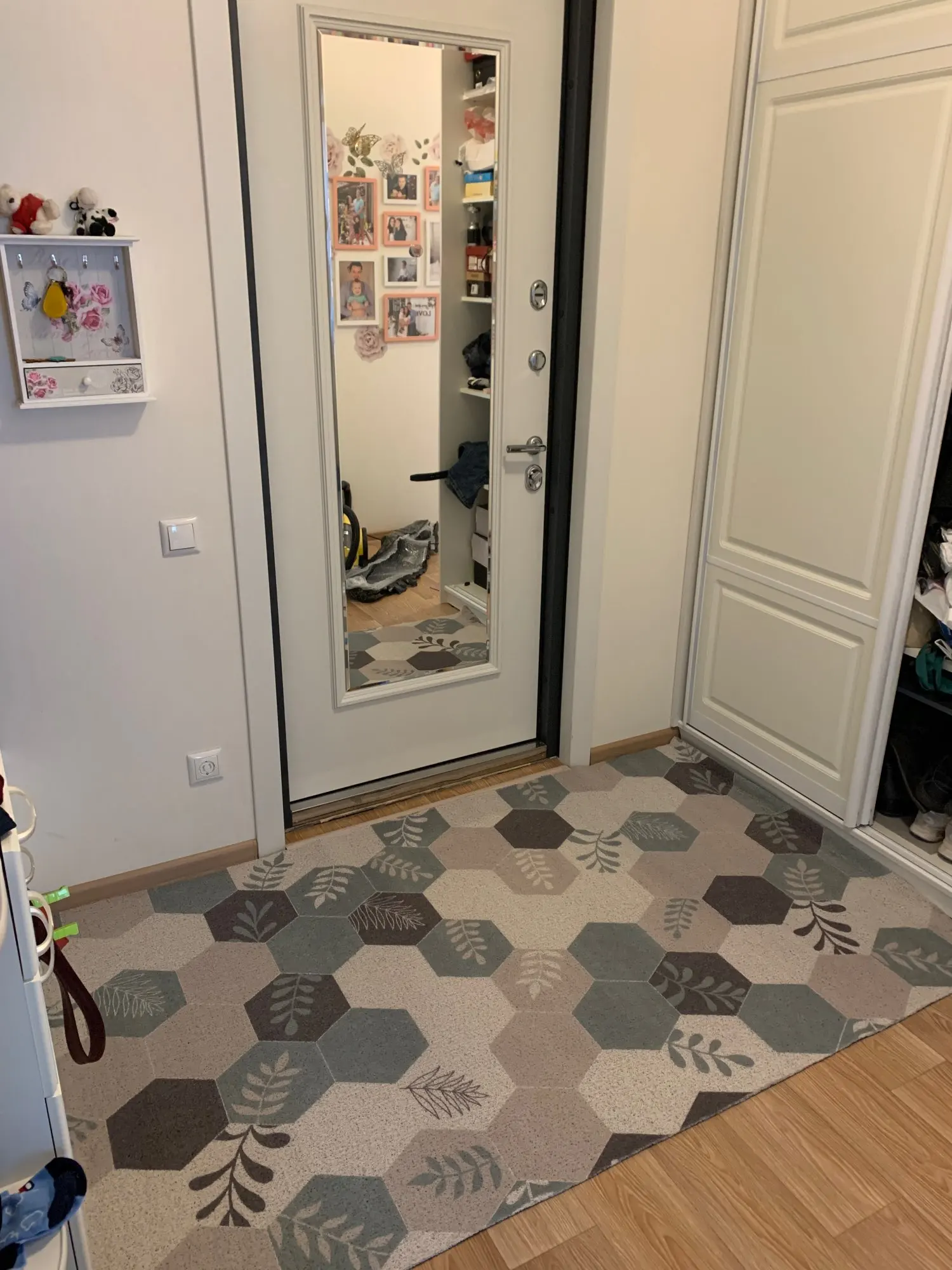На фото цвет коврика ярче, в действительности он более тусклый и темный. Но все равно красивый. Приятный на ощупь. Но чувствую, недолго будем ему радоваться)) следы грязи с улицы, конечно, никуда не деваются. Коврик подойдёт для эксплуатации в летний период, если стелить в прихожую. Зимой он быстро будет пачкаться. Слишком дорого, чтобы так быстро его испортить российской грязью с улиц))) а так коврик супер!