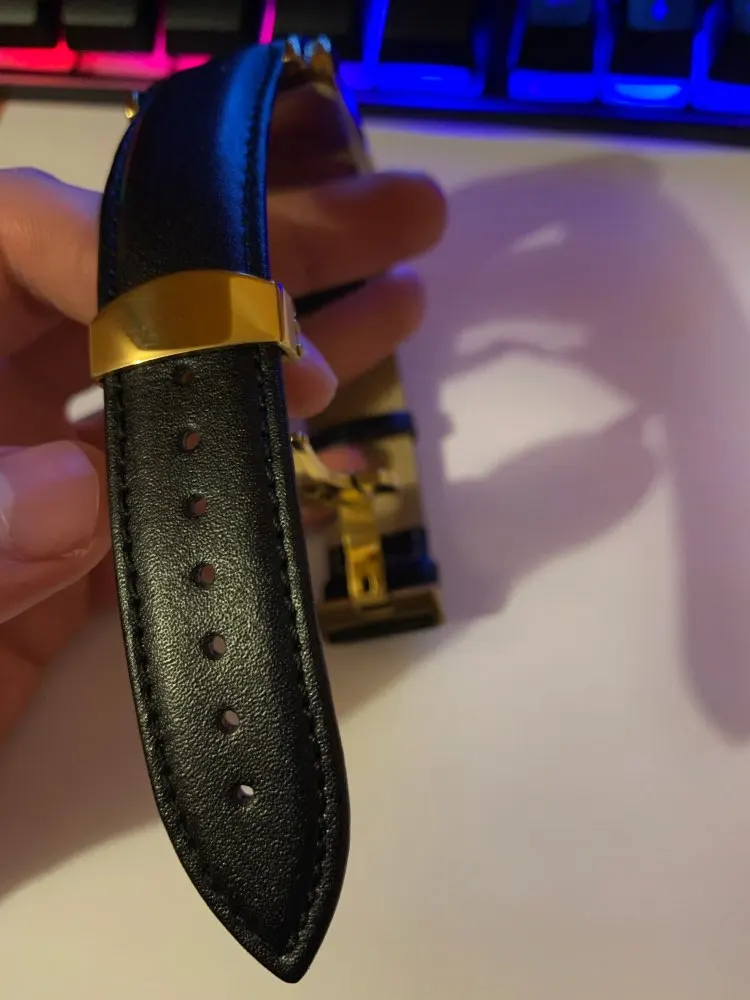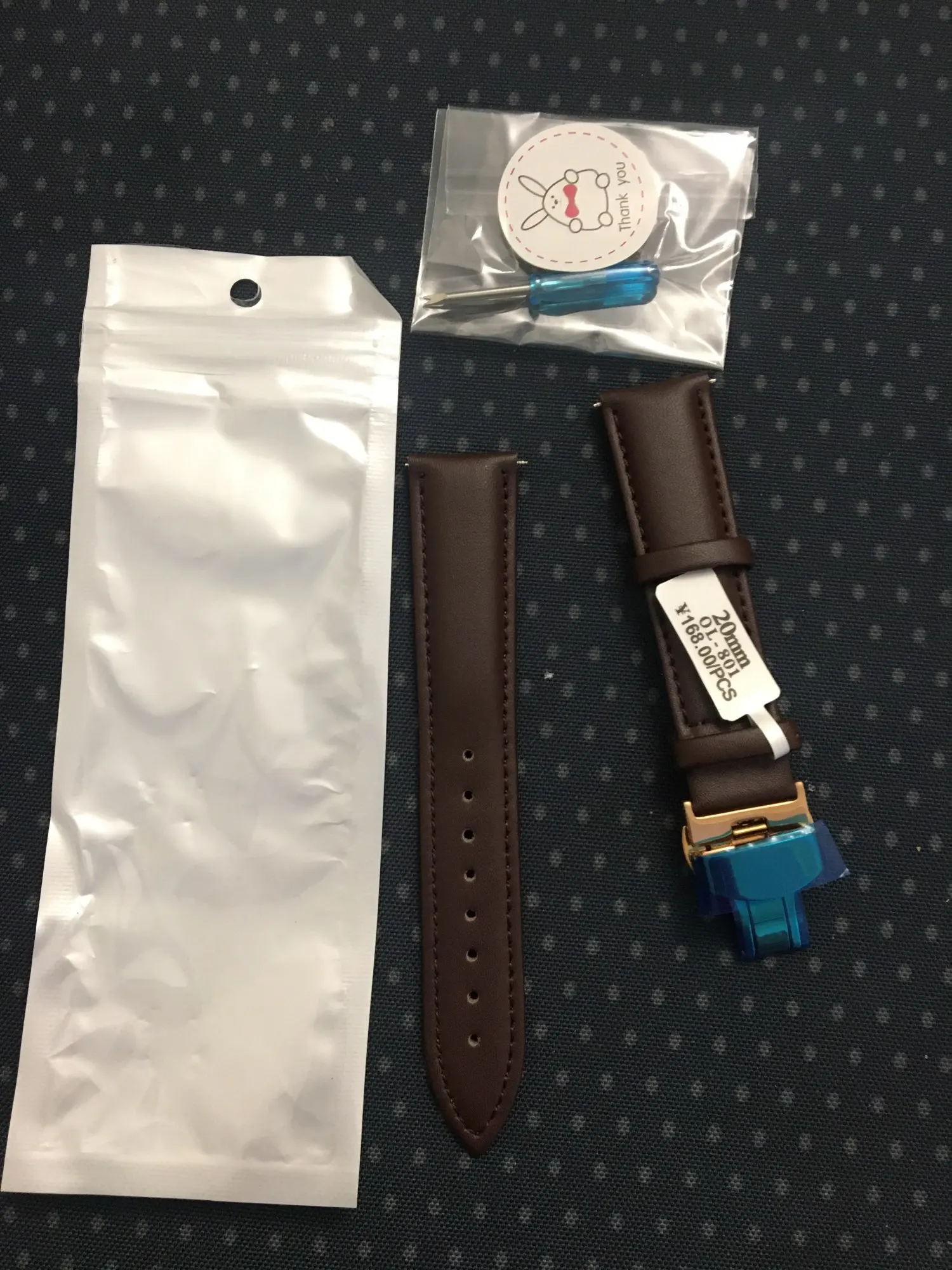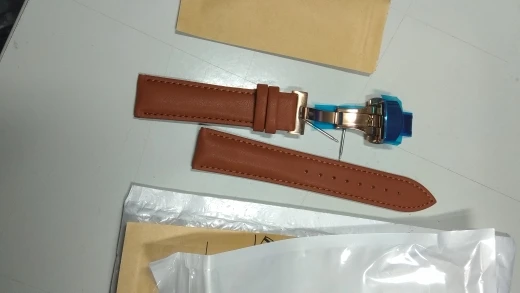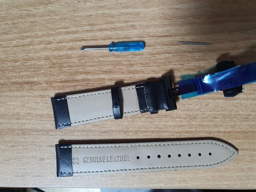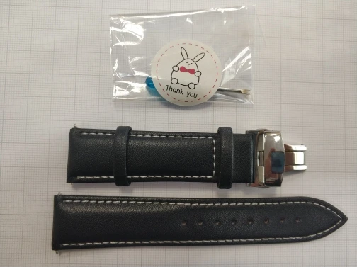 Хороший ремешок из натуральной кожи. Вместе с ремешком шли две оси для установки в ушки часов. К часам подошёл идеально. Однако на фото была коробка для ремешка, фактически прислан в пакете. В остальном все устраивает. С продавцом не общались, отправлено быстро.