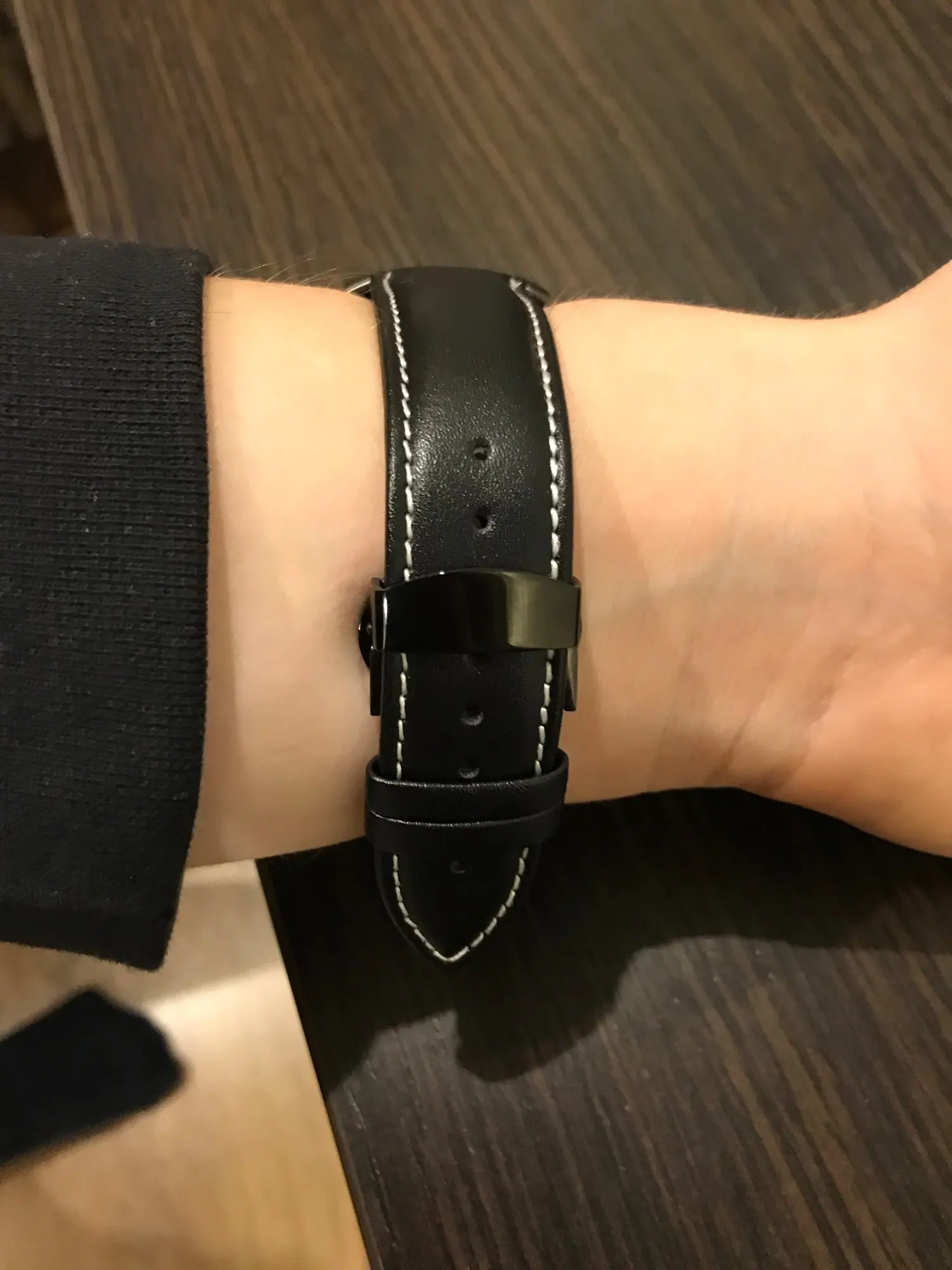 Очень хороший ремешок, солидно, тяжелый за счёт застежки. Продавцу спасибо. Доставка быстрая.