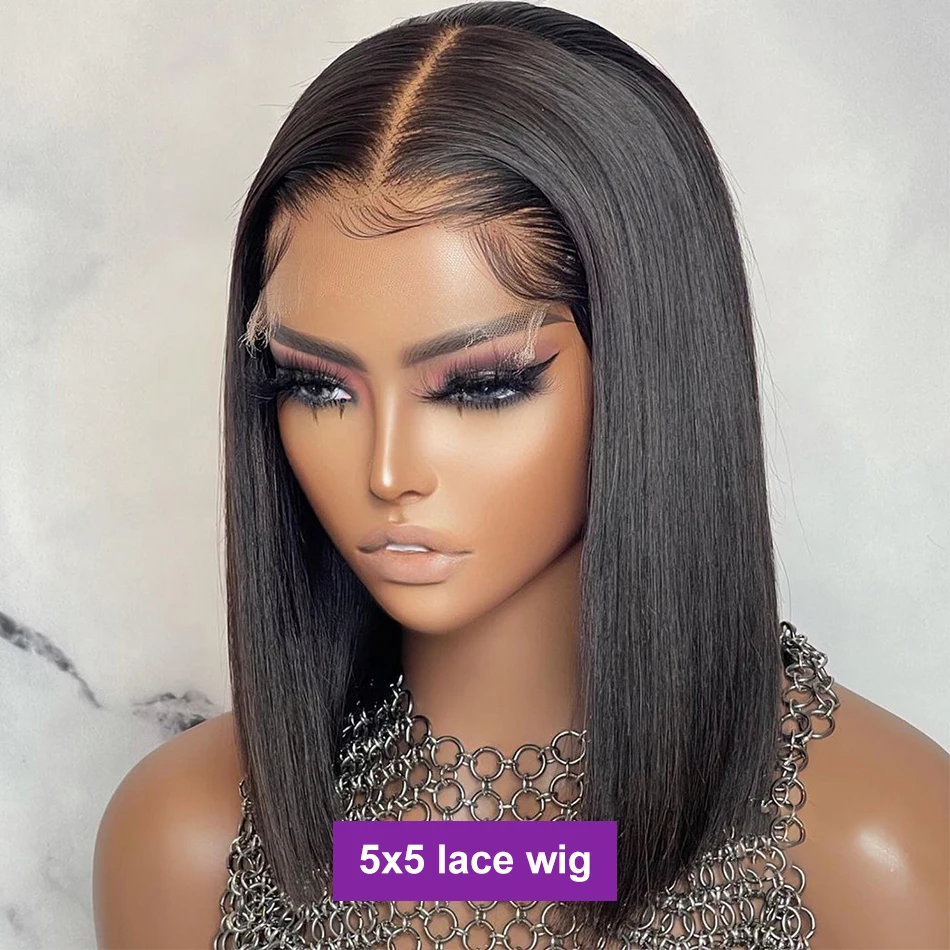 Прямые парики боб HF, 100% парики из натуральных волос Реми, бразил...