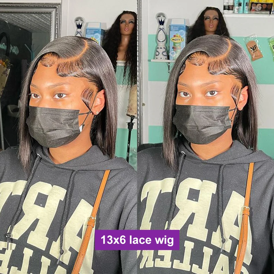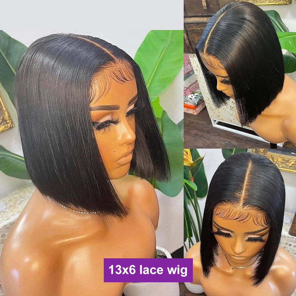 Короткие парики боб, прямые фронтальные парики из человеческих воло...