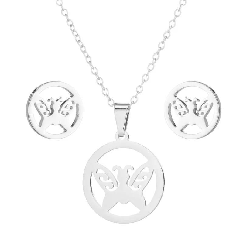 Простые серьги из нержавеющей стали ожерелье набор женщин бабочка ювелирный набор