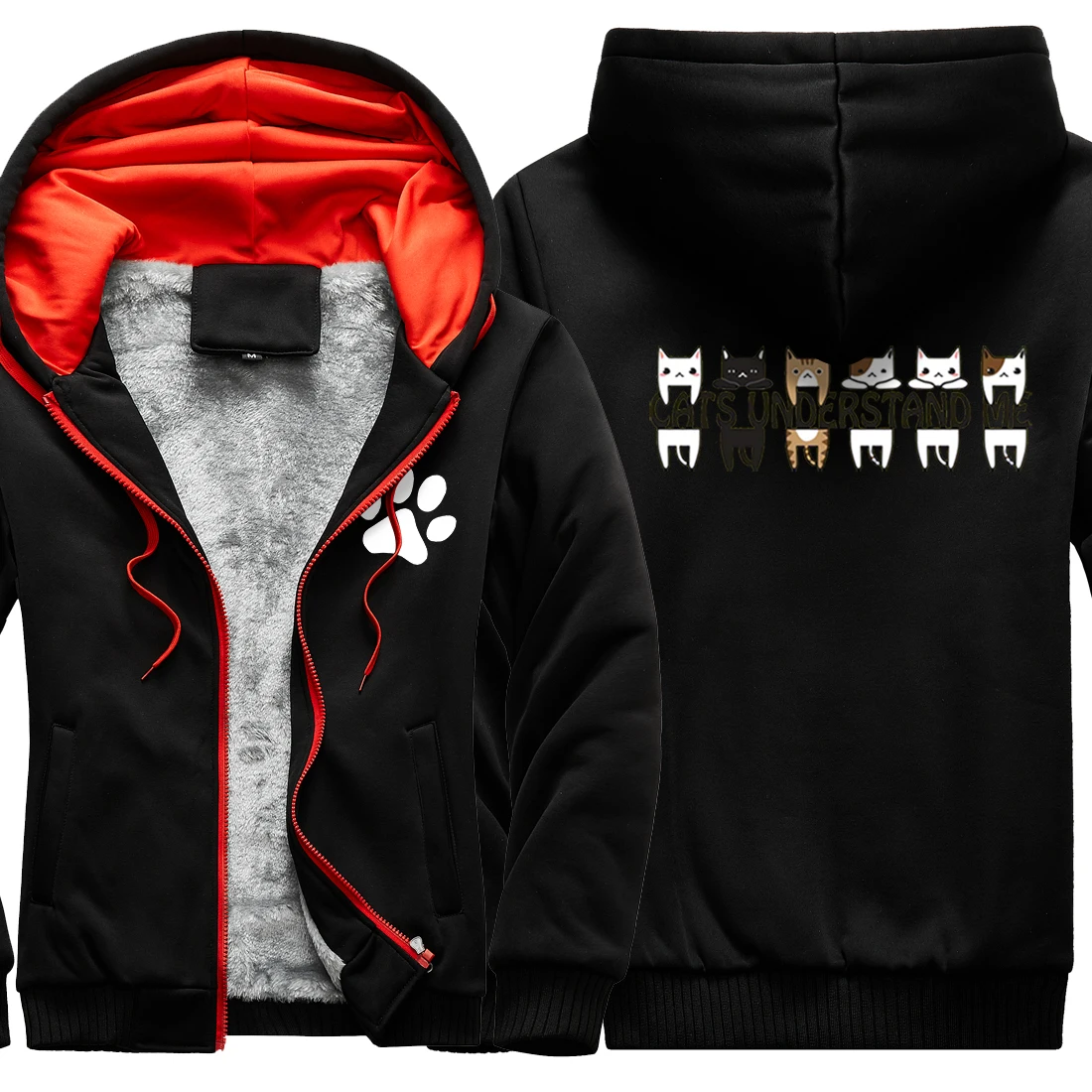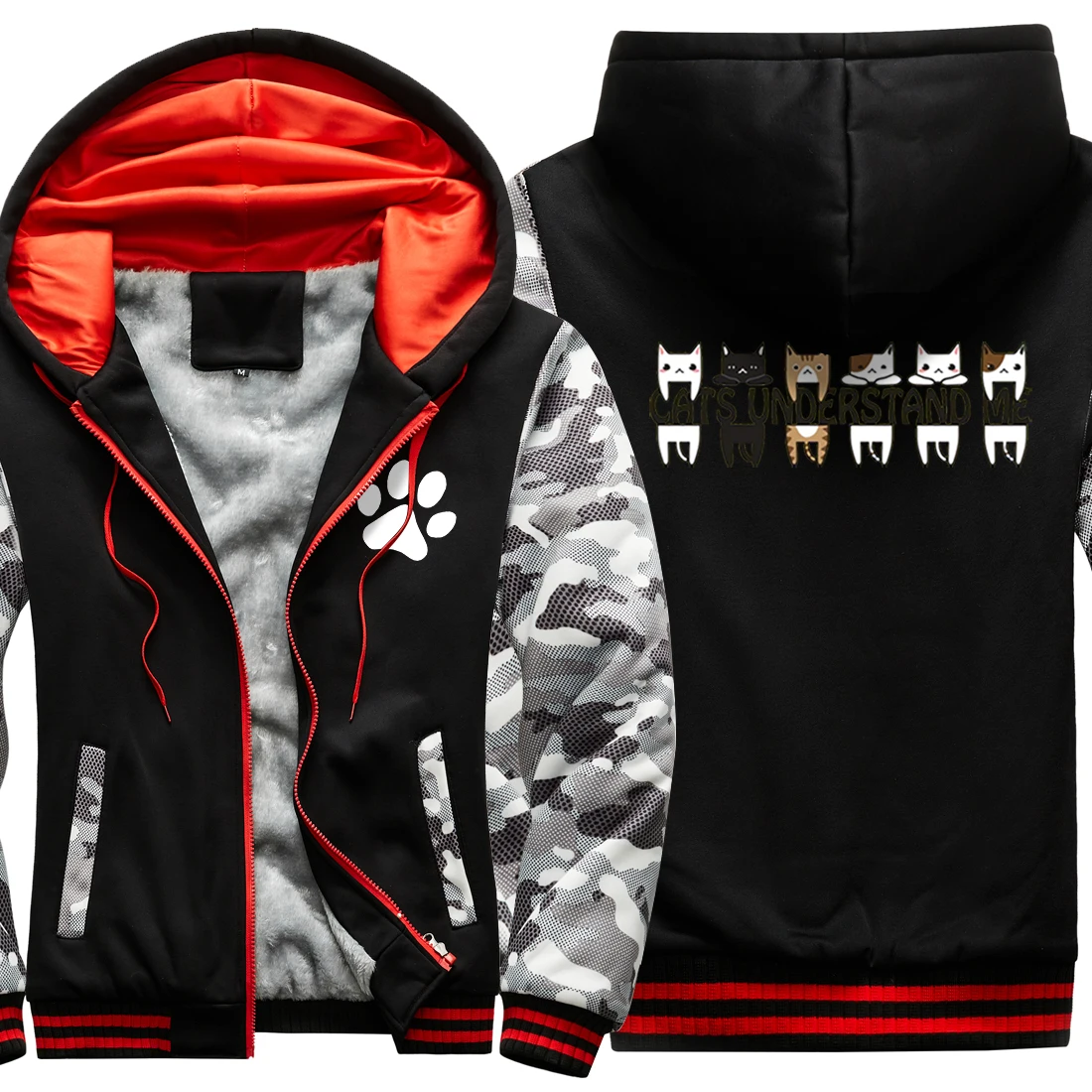Забавные флисовые куртки с капюшоном и принтом кошек; Зимние уличные теплые спортивные куртки; Новинка; Повседневная мужская уличная одежда; Пальто с капюшоном