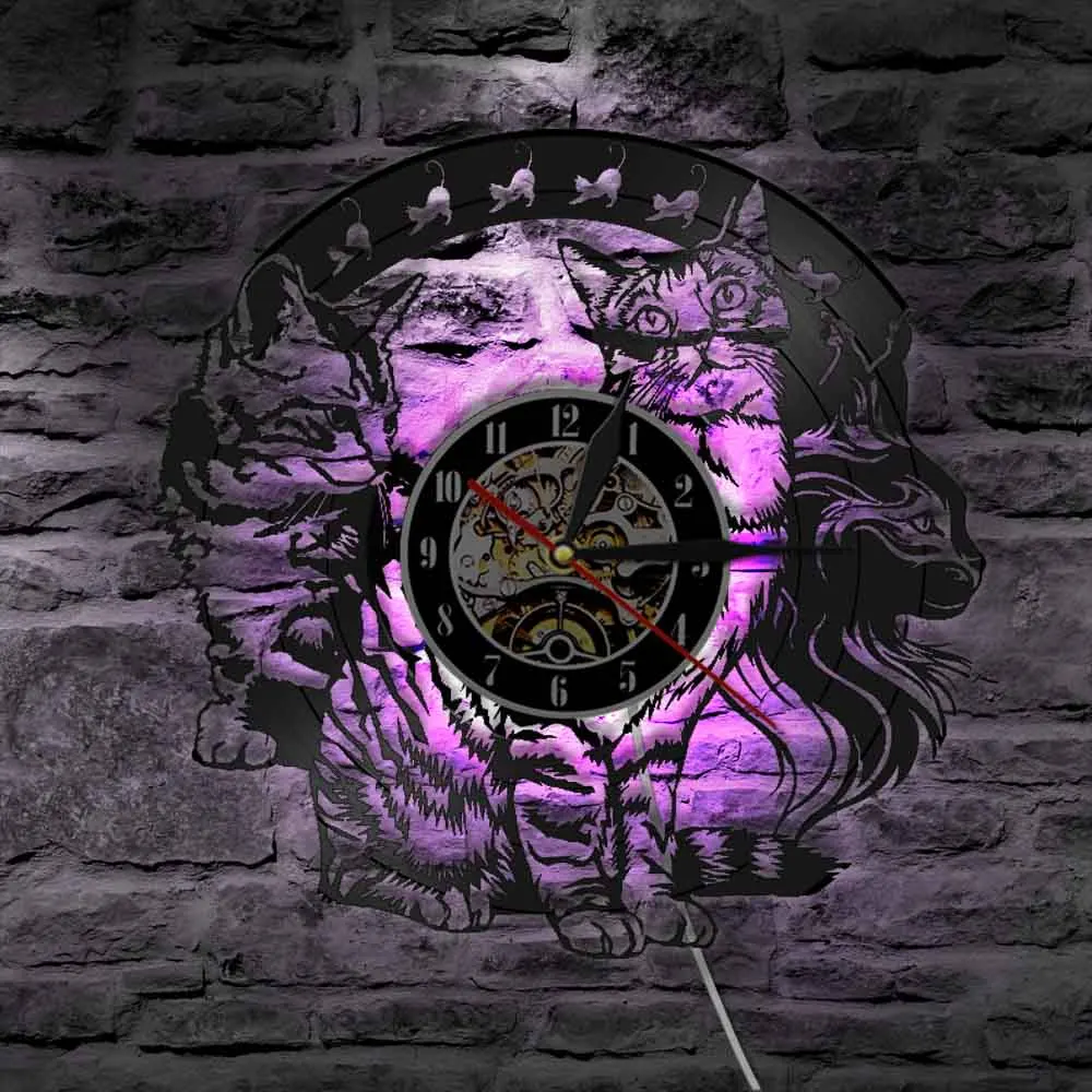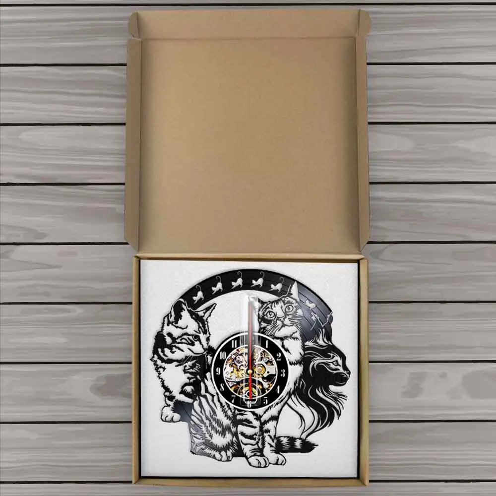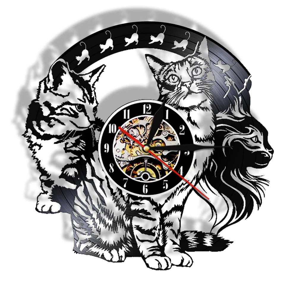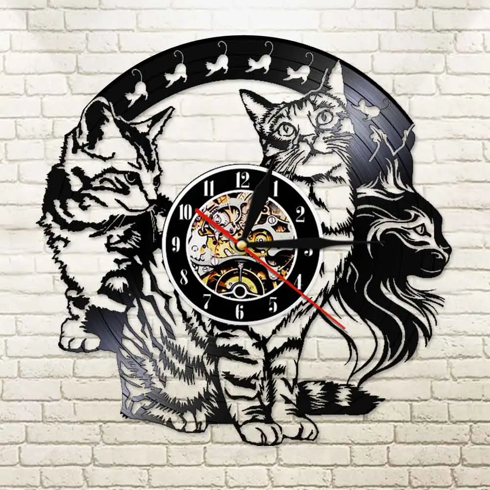 Настенные часы с изображением кошки, винтажные настенные часы с виниловой пластиной, домашний декор с изображением животных, котят, резьба по искусству, часы для музыкального альбома