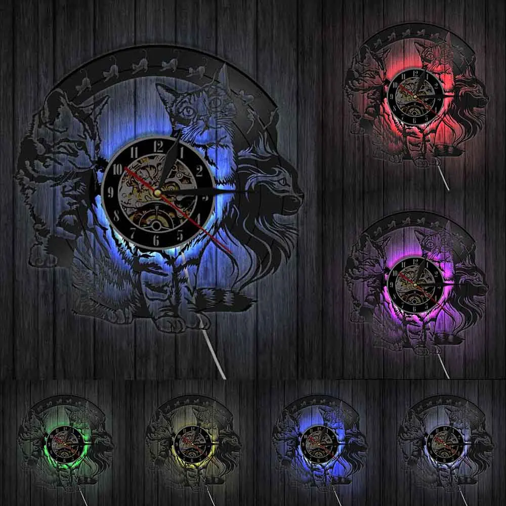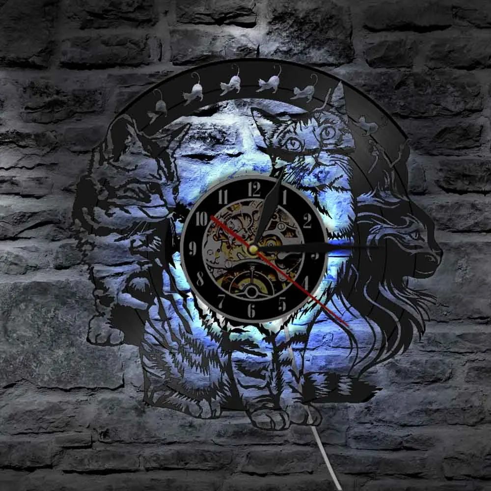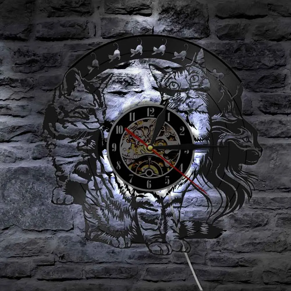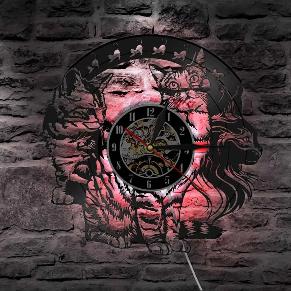 Настенные часы с изображением кошки, винтажные настенные часы с виниловой пластиной, домашний декор с изображением животных, котят, резьба по искусству, часы для музыкального альбома