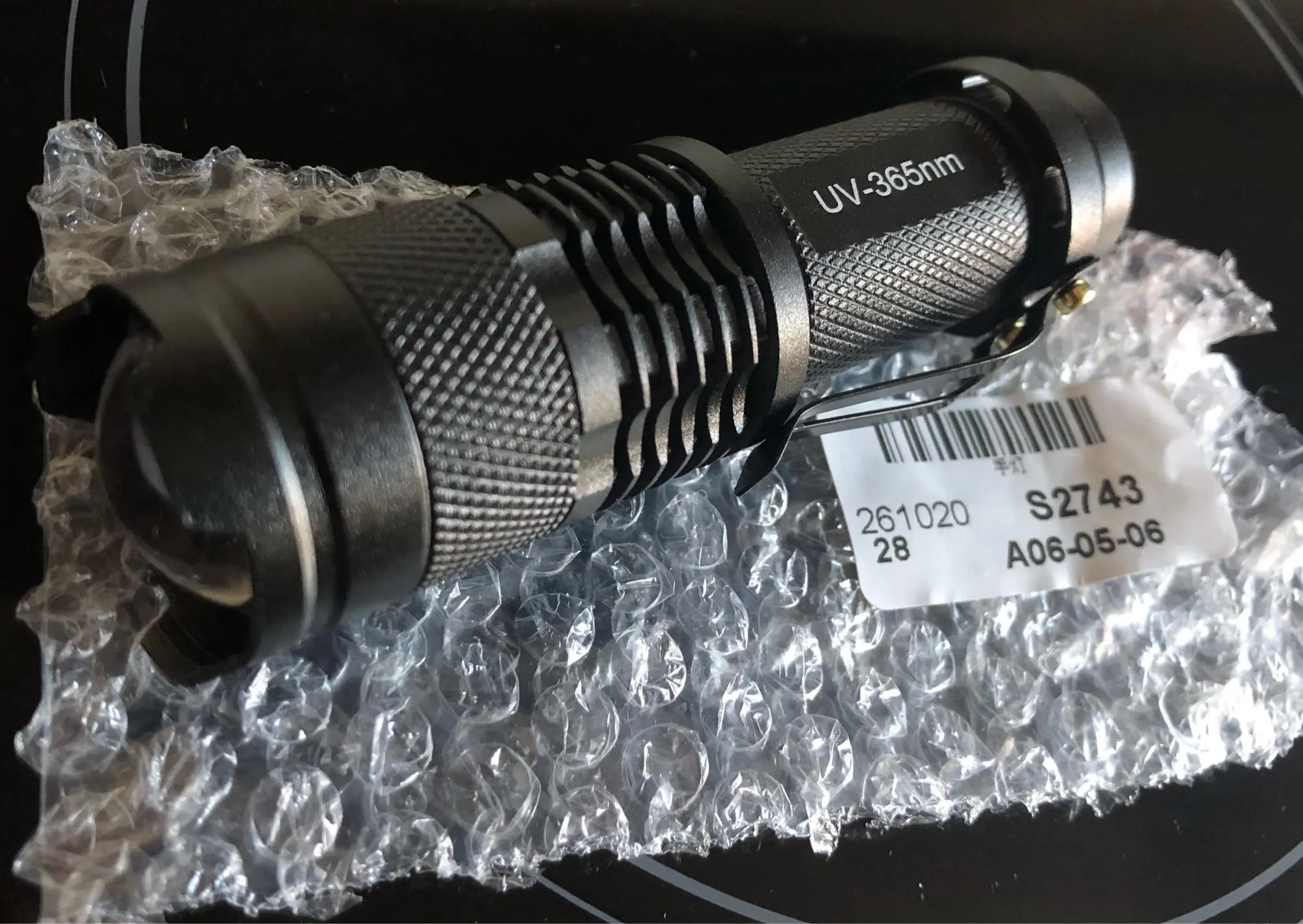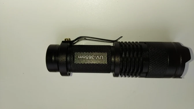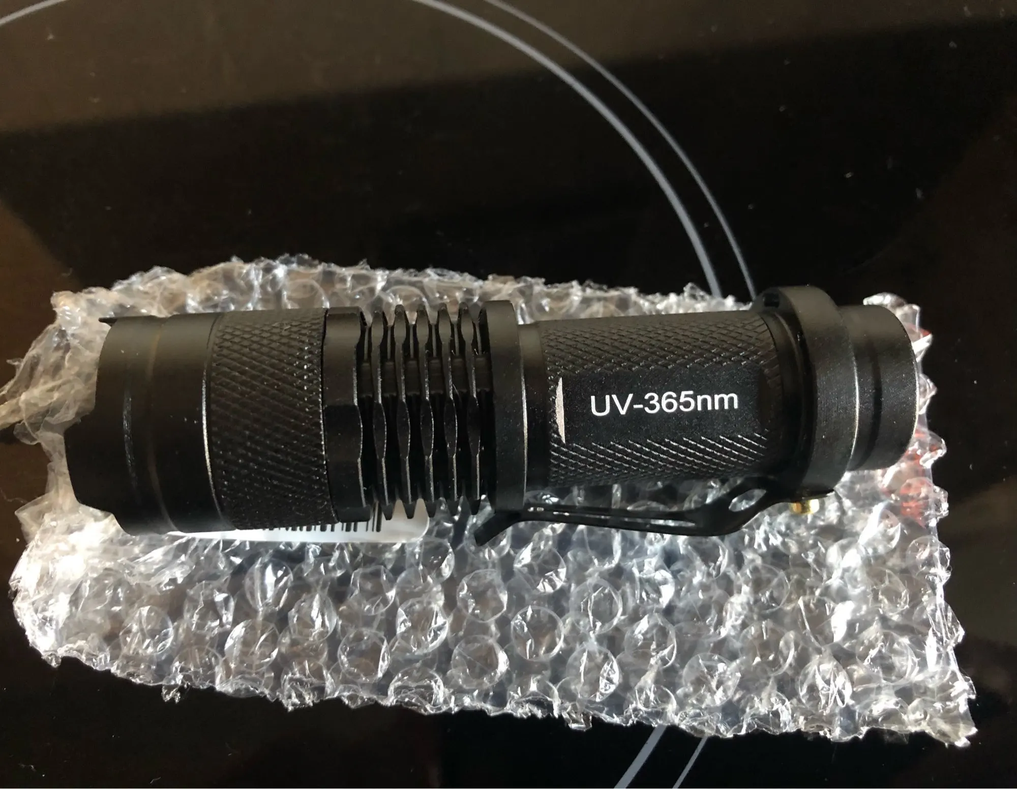 Received this mini 365 nm flash light in excellent condition. Would definitely buy again from Seller.