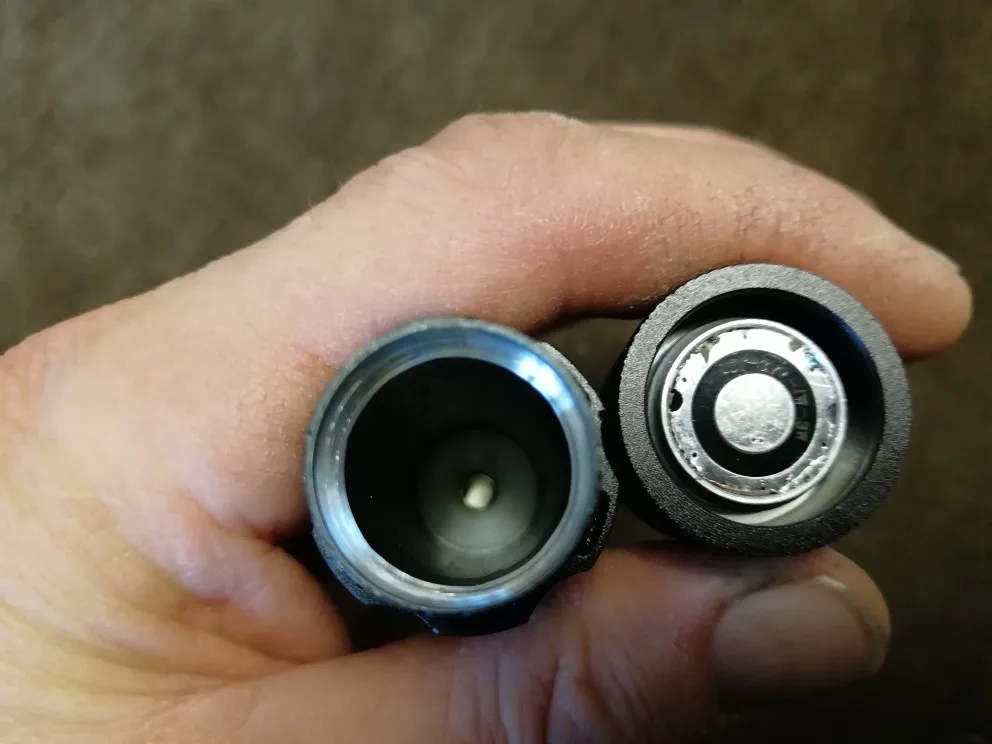 Фонарик отлично сушит маску! Работает и от аккума 14650, и от АА-батареи. 1.5В батарейки для сушки хватает. 20 секунд - и маска твёрдая. Думаю, там действительно 365 нМ свет. Звезду снял за то, что на прямо линзе пятно какого-то клея или герметика. Не оттирается.