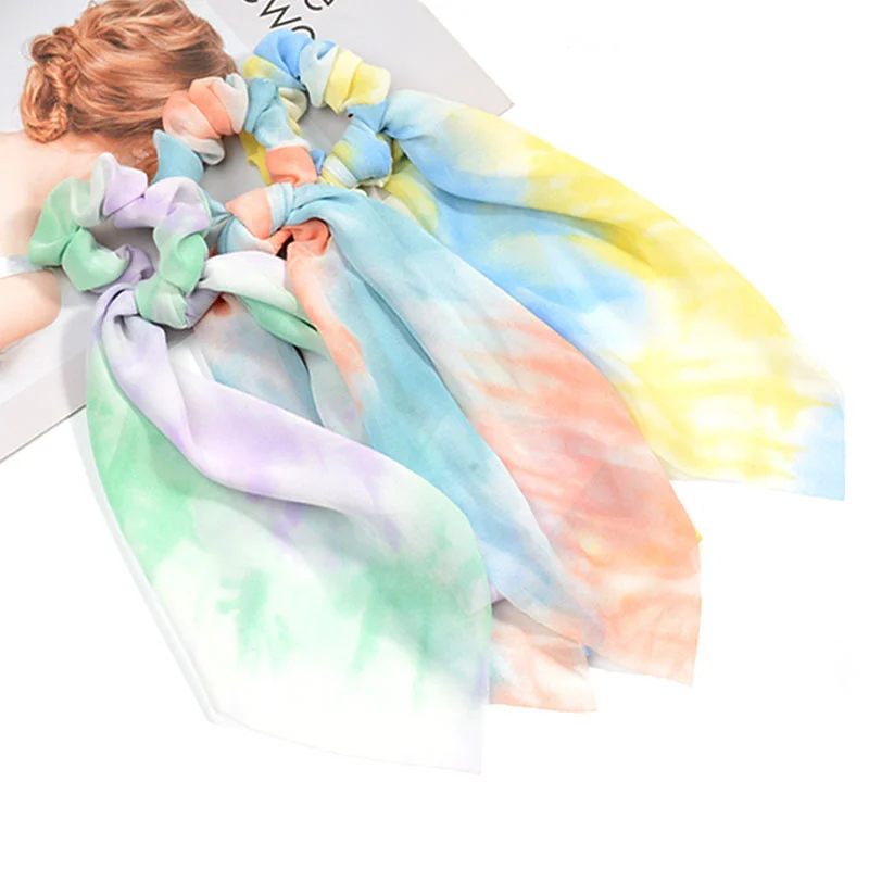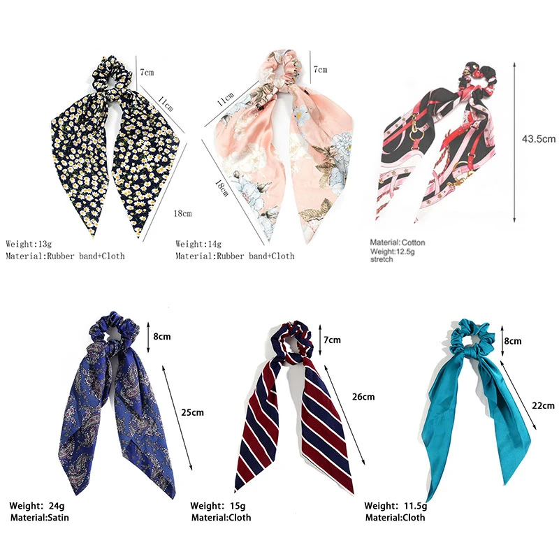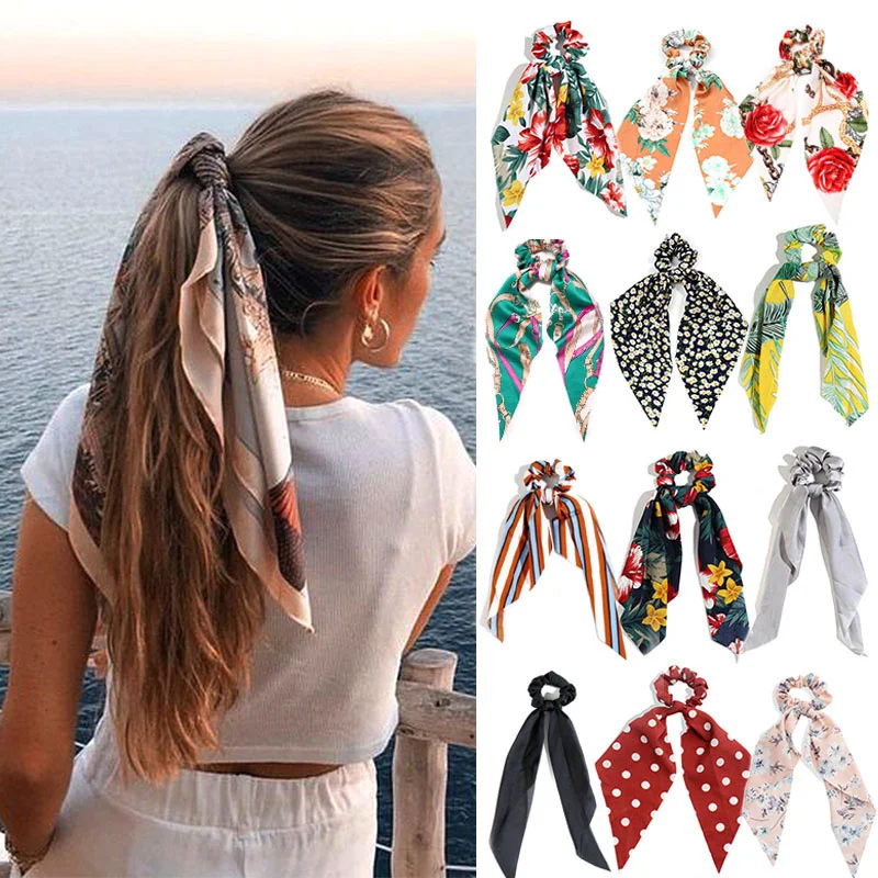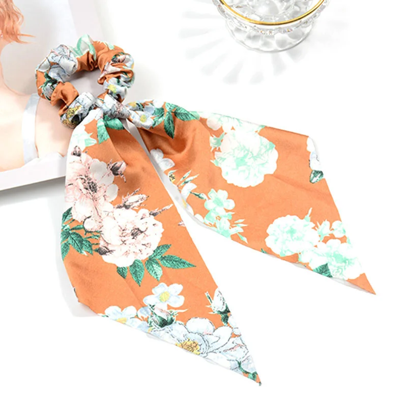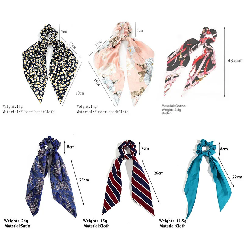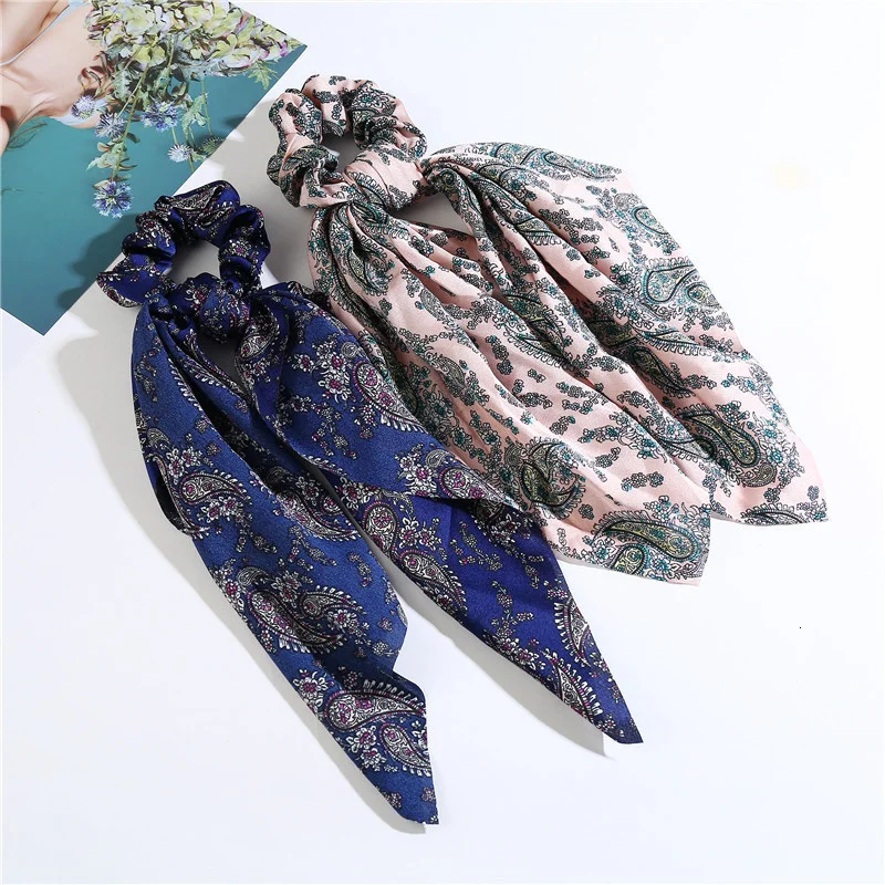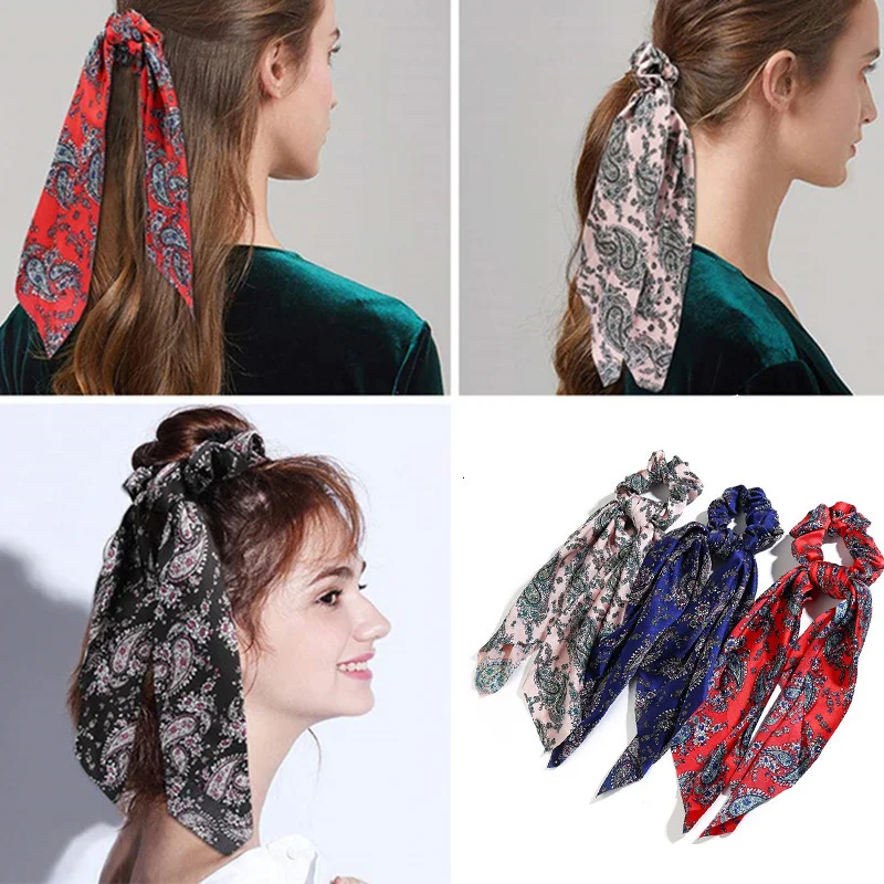 Женская резинка для волос с длинным шарфом, элегантная эластичная лента с принтом, аксессуар для волос