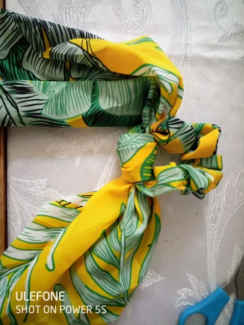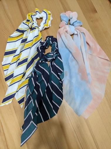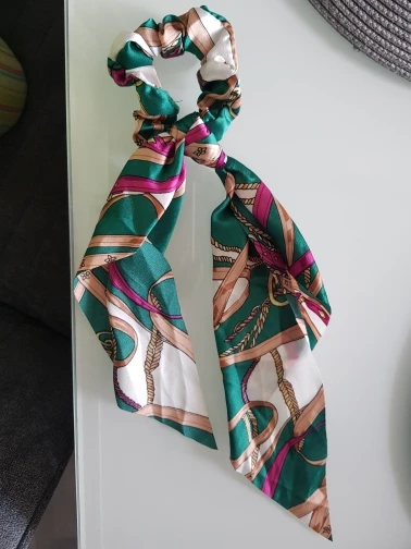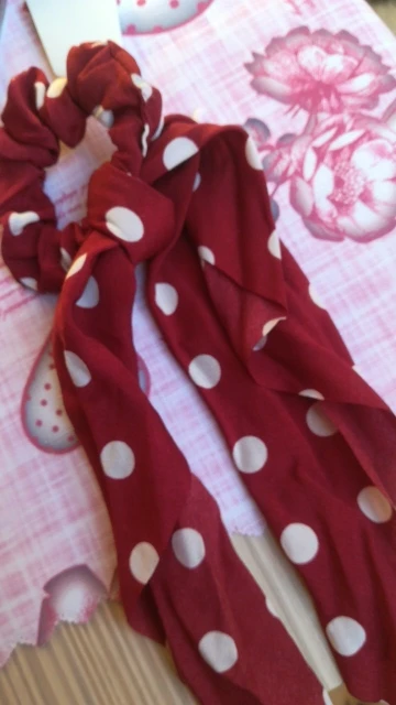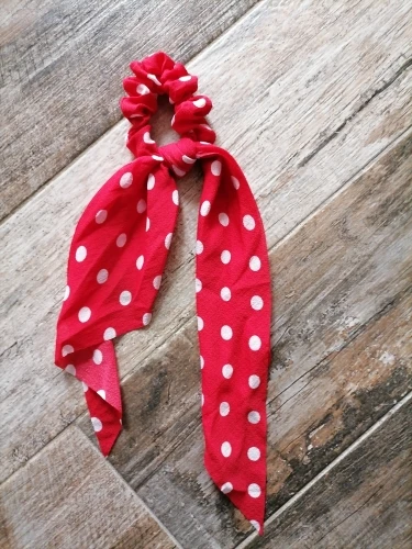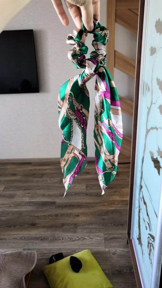 Миленький аксессуар, разнообразит каждодневный хвостик. Материал что-то вроде плотного шифона, шероховатый. Единственное, резинка слишком тугая, на мой взгляд, на мой жидкий хвостик 2 оборота, хотелось бы чуть послабее, это же больше для украшения, а не фиксации, было бы удобнее пользоваться привычной резинкой под низ. С продавцом не общалась, пришло чуть больше, чем за 2 недели
