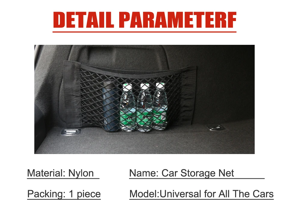 Название продукта: сетка для автомобильного багажника Материал: нейлон Размеры: 40x25 см/50x25 см/60x25 см Цвет: черный Подходит: Универсальный для всех автомобилей Особенности: 1. Многофункциональный сетчатый мешок, багажник для хранения, фиксированный и простой в рулоне, фиксированный огнетушитель. 3. Изготовлен из высококачественного нейлонового материала, деформация не деформируется. 4. Использование супер-герметичной окантовки, сильной адсорбции и прочного сетчатого кармана. 5. Он может держать много мусора и может хранить чистящую распылительную бутылку. 6. Используя сильную липучку и сильный склеивание 3 м клей, сильное прилипание не оставляет. Внимание: Этот продукт не может быть прикреплен к гладким поверхностям, таким как пластик, силикон, кожа и т. д. Примите к сведению, что Фотографии только для справки. Фактический продукт будет превалировать. Ваше удовлетворение-наша главная забота. Пожалуйста, свяжитесь с нами, чтобы лучше решить любую проблему, прежде чем оставлять нейтральные или негативные отзывы. Большое спасибо! Посылка: 1 шт./заказ