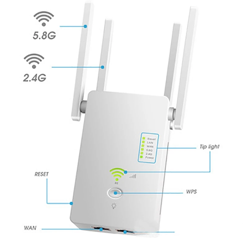 Усилитель сигнала ретранслятора Wi-Fi 1200 м беспроводной маршрутизатор сетевой расширитель 2,45,8G WiFi 2 порта (штепсельная Вилка европейского стандарта)