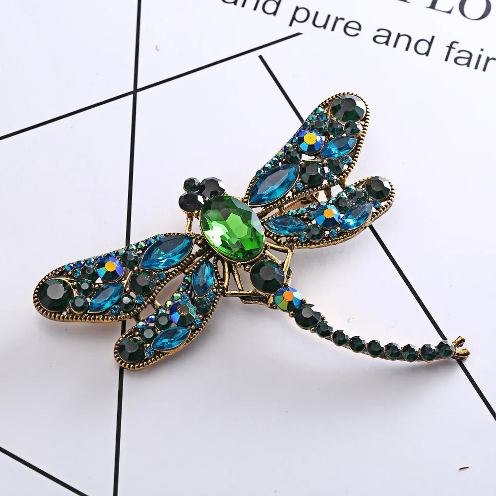 Винтажные броши в форме стрекозы с кристаллами для женщин, большая насекомая, нагрудный знак брошь, модные аксессуары для платья, пальто, ювелирное изделие, подарок