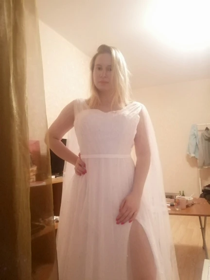 Модное мягкое шифоновое длинное ТРАПЕЦИЕВИДНОЕ свадебное платье-Рус...