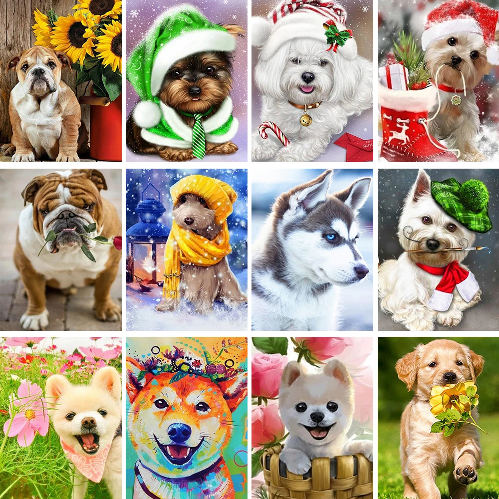 Алмазная живопись 5D "сделай сам", полный квадратный кристалл, пес ...