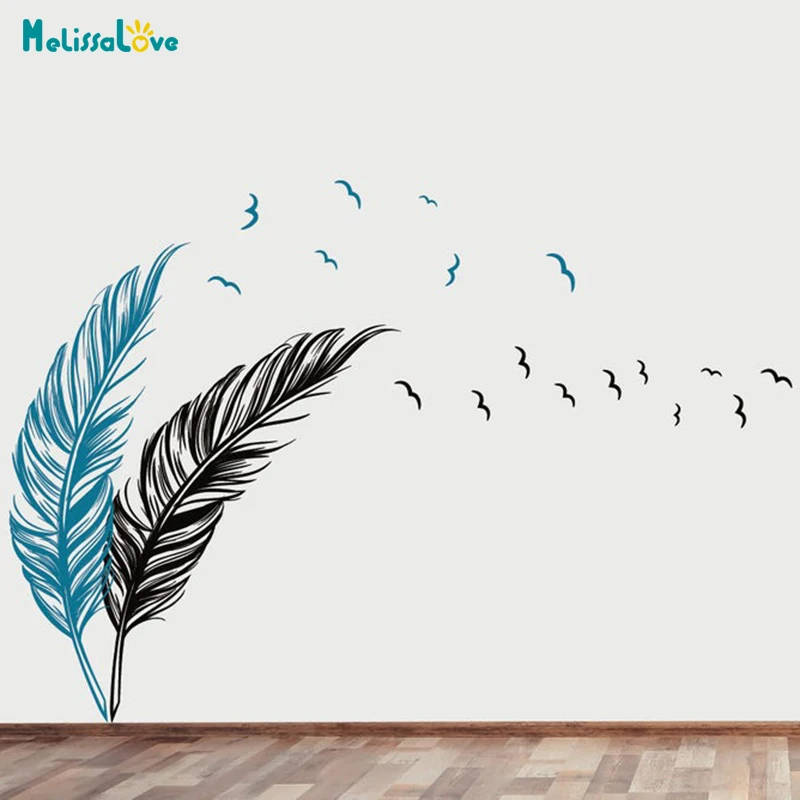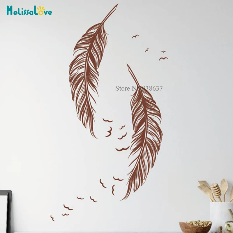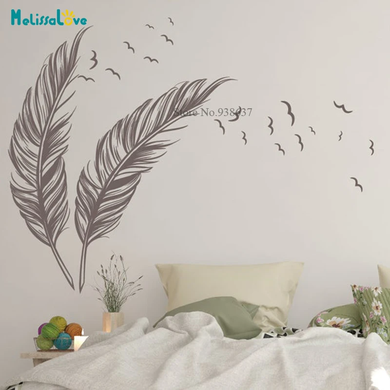 Перо с птицами Настенная Наклейка в стиле бохо птицы спальня гостиная домашний декор Съемные Виниловые настенные наклейки BB790