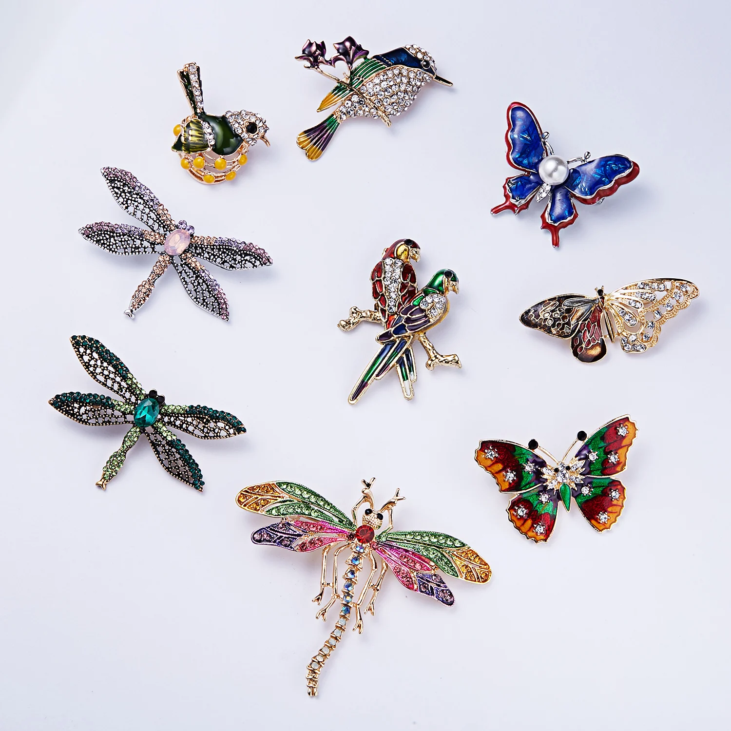 Металлические стразы для банкета, броши для мужчин и женщин, в виде бабочки, стрекозы, птицы, животных, свадебные булавки брошки, подарок, Прямая поставка