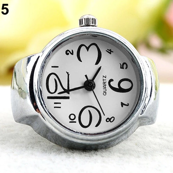 Кольцо на палец для женщиндевочек, гладкий стальной круглый циферблат, эластичное кварцевое кольцо на палец с часами, Женское кольцо, мини-размер, подарок для студента