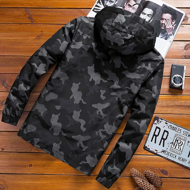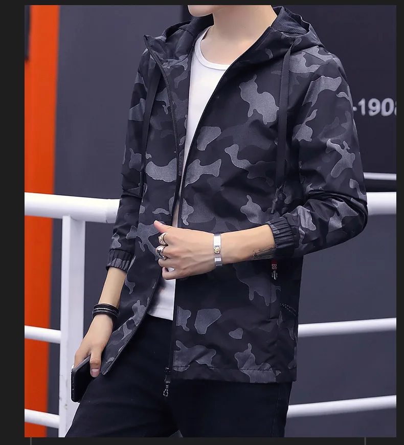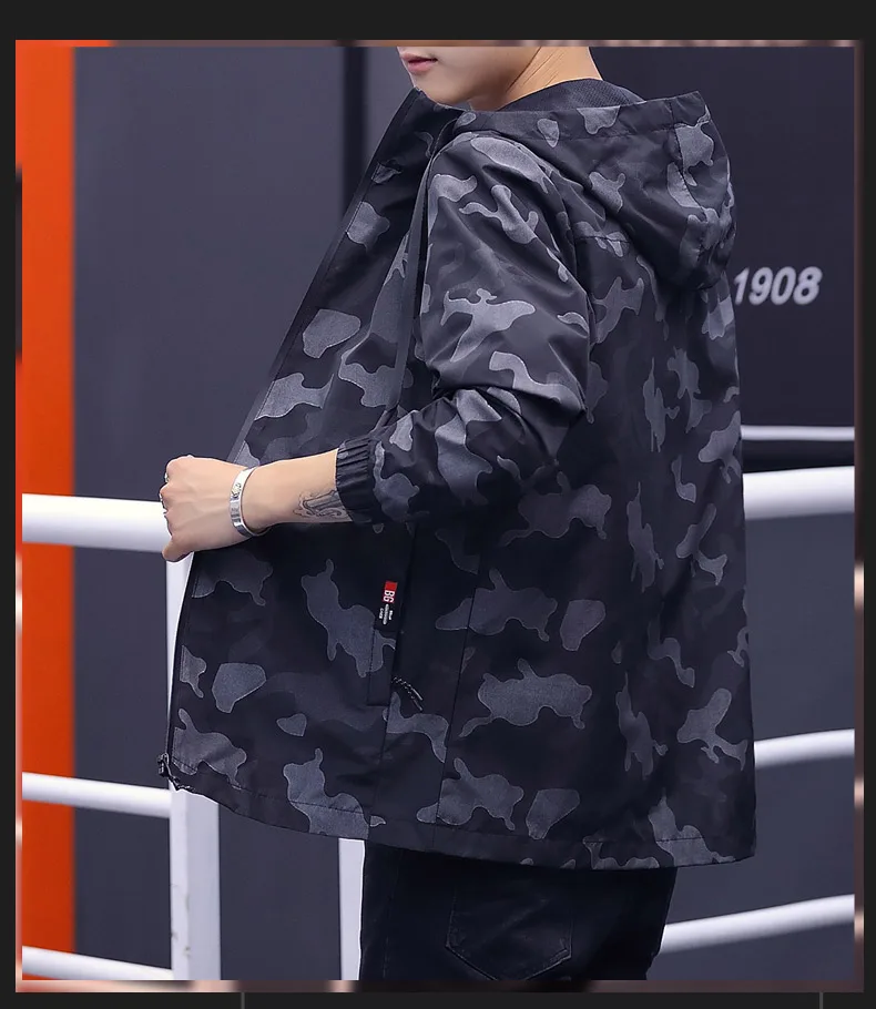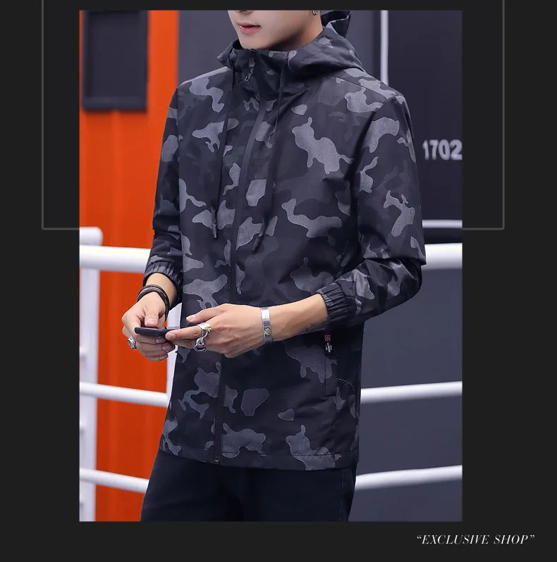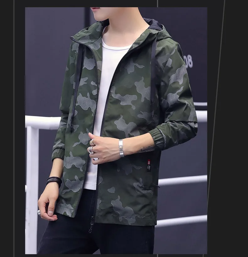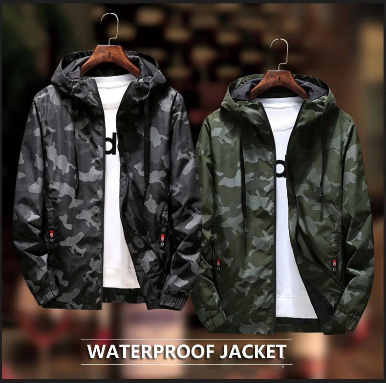 Куртка мужская водонепроницаемая с капюшоном, повседневная ветрозащитная камуфляжная куртка-бомбер, приталенный силуэт, верхняя одежда, C301, на осень-весну