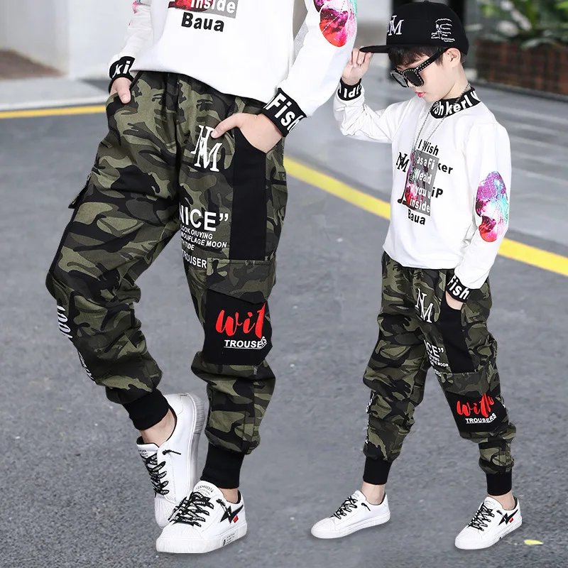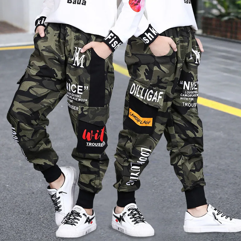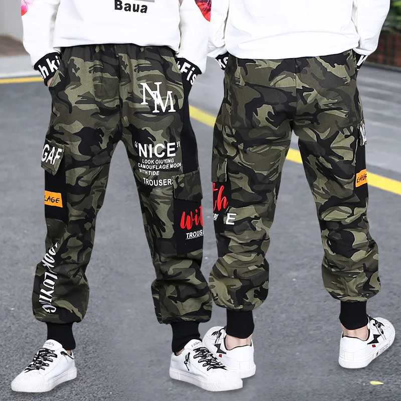 Осенние модные камуфляжные джоггеры, штаны для детей, хлопковые детские спортивные брюки-карго для мальчиков, суперэластичные брюки, детская одежда