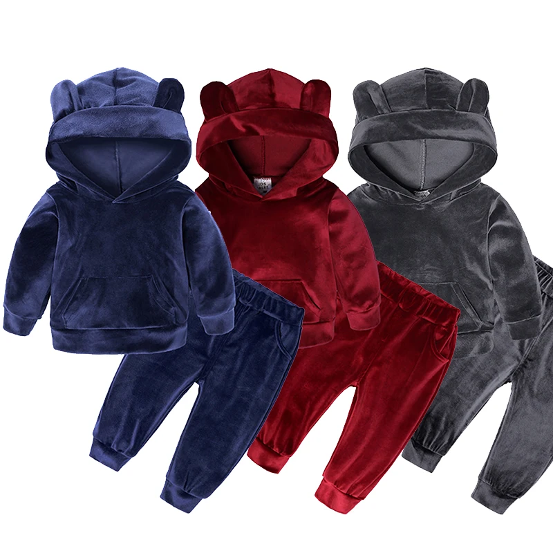 От 1 до 7 лет комплекты одежды для маленьких мальчиков и девочек осенне-зимние костюмы Детский спортивный свитер с капюшоном + золотые бархатные штаны Одежда из 2 предметов