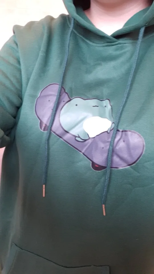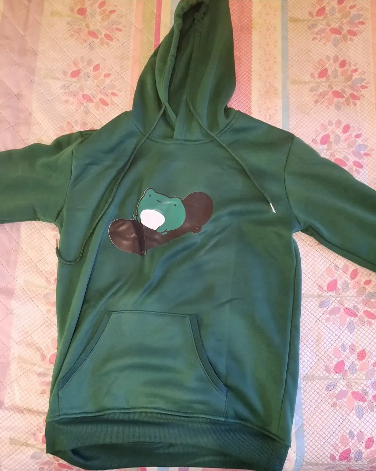 Лучшая толстовка. Честно говоря, моя любимая одежда покупается в этом десятилетии. Очень мягкий и теплый, очень большой и удобный! Плюс, лягушка такая милая! Это делает меня очень счастливым в нем, и все мои друзья тоже хотят один!