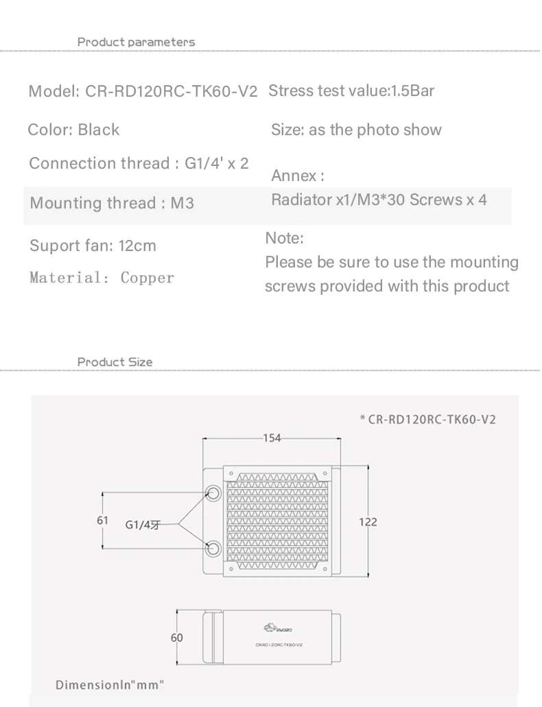 Охлаждающий радиатор для ПК Bykski G14 дюйма, 60 мм, толщина 12 см,...