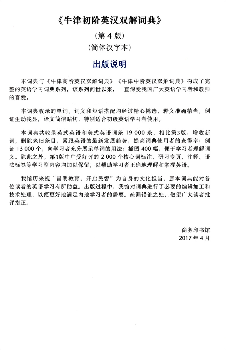 Оксфордский английский-китайский словарь для начальной школы Справочная книга на английском языке