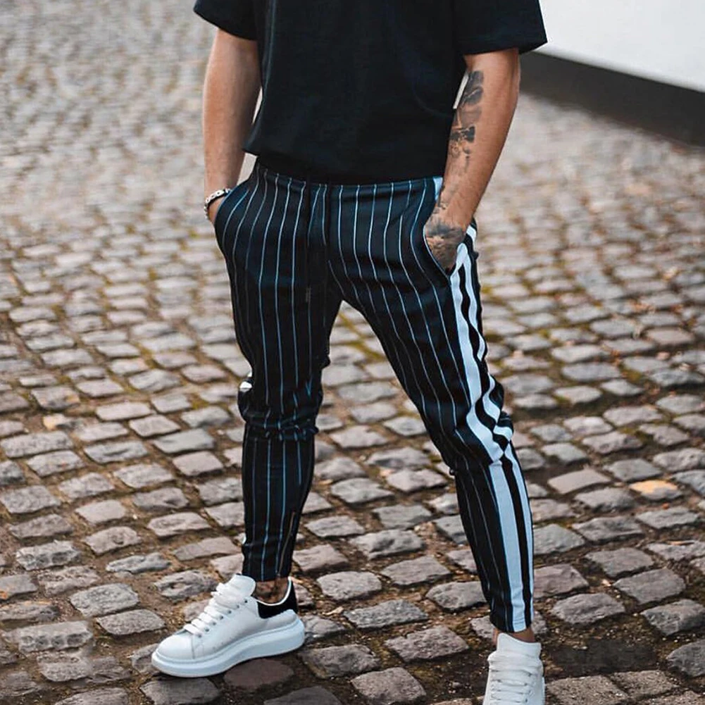 Брюки-Карандаш мужские облегающие, модные повседневные штаны, джоггеры, карго, длинные брюки в полоску, с эластичным поясом